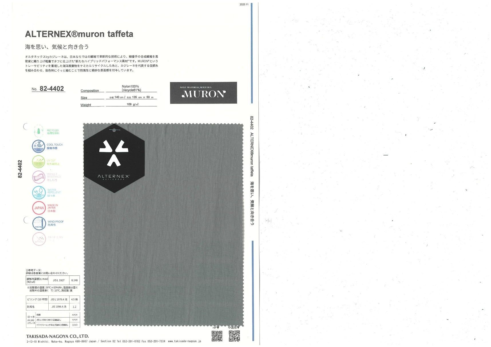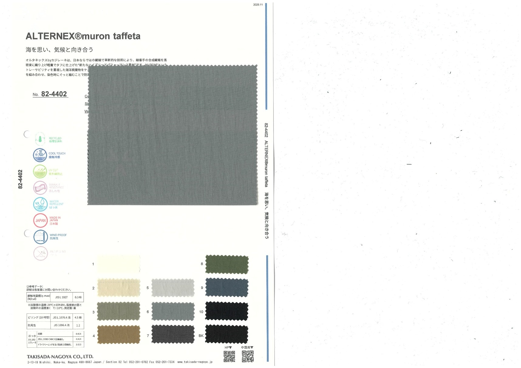 ALTERNEX®muron taffeta 添加到收藏夹中 82-4402 面料、混率 规格、尺寸 135cm x 50m 2025.11 放大的图像 色彩多样的放大图像 可持续的 回收 动物保护 可手洗 保温性能 接触冷感 吸汗速干 抗紫外线 抗皱 四门弹 防透光 抗沷水 日本产 意大利产 防风 抗菌防臭 抗病毒 吸湿发热 抗静电 除臭 抗起球 高弹性 吸光发热