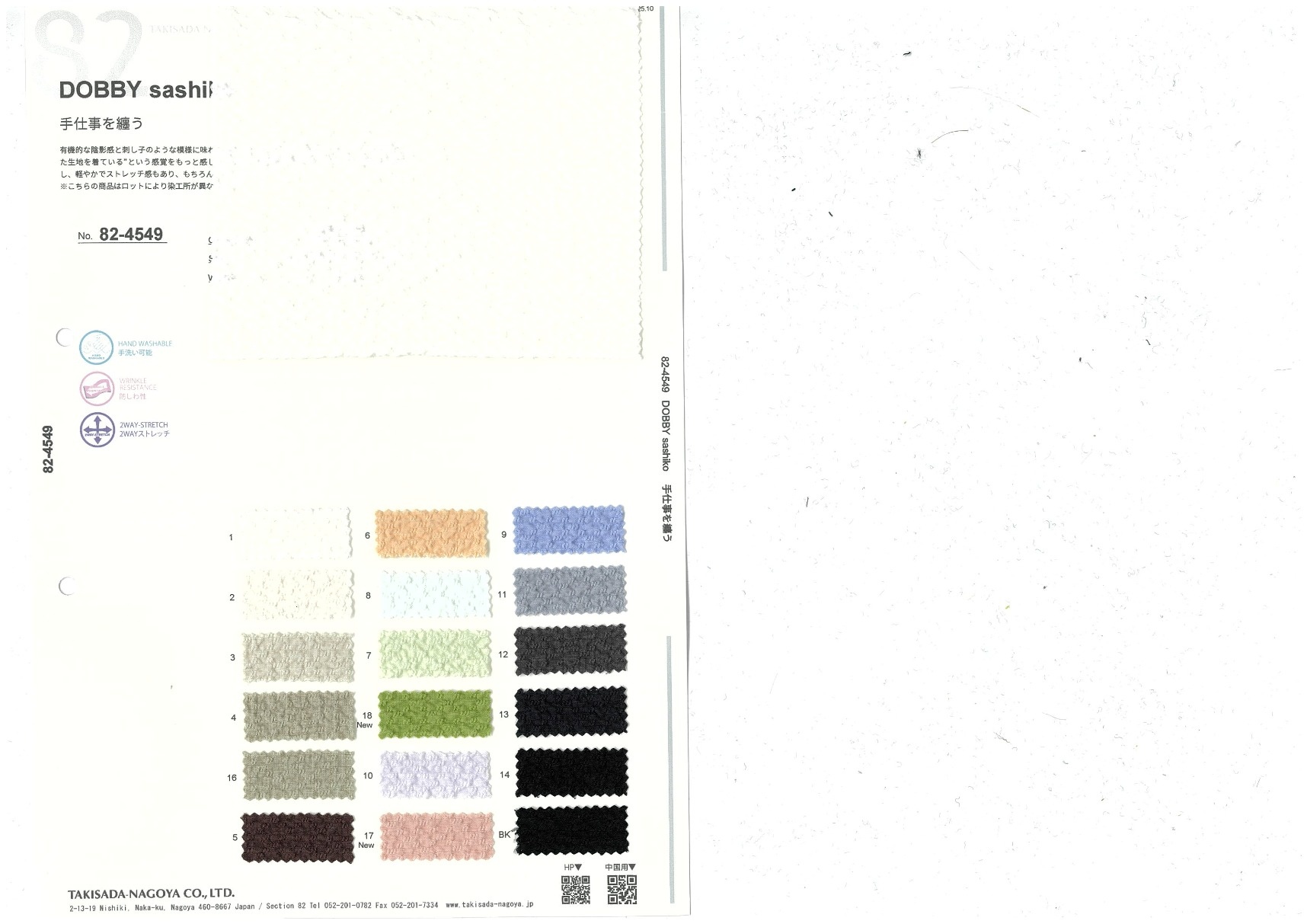 COTTONLINEN like sashiko 添加到收藏夹中 82-4549 面料、混率 Polyester 99% Polyurethane 1% 规格、尺寸 130cm x 50m 2025.10 放大的图像 色彩多样的放大图像 可持续的 回收 动物保护 可手洗 保温性能 接触冷感 吸汗速干 抗紫外线 抗皱 四门弹 防透光 抗沷水 日本产 意大利产 防风 抗菌防臭 抗病毒 吸湿发热 抗静电 除臭 抗起球 高弹性 吸光发热