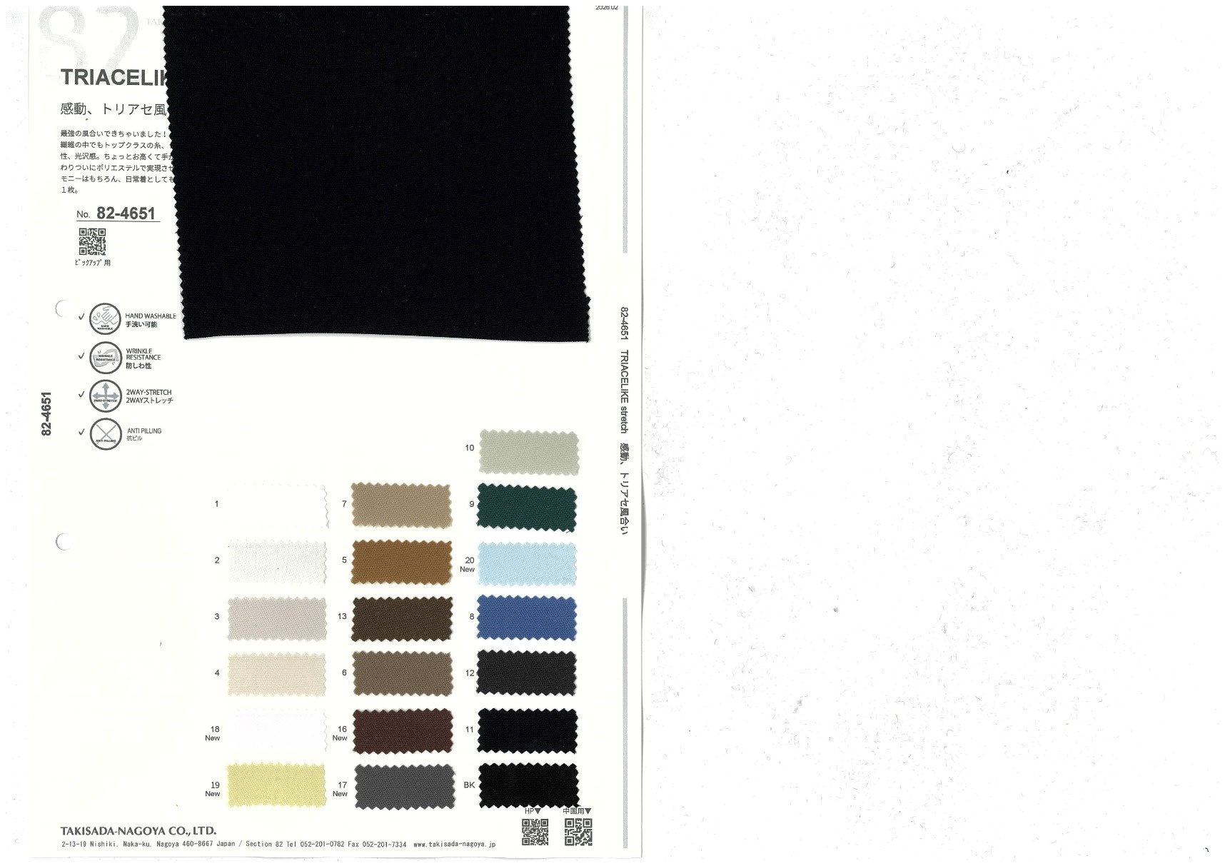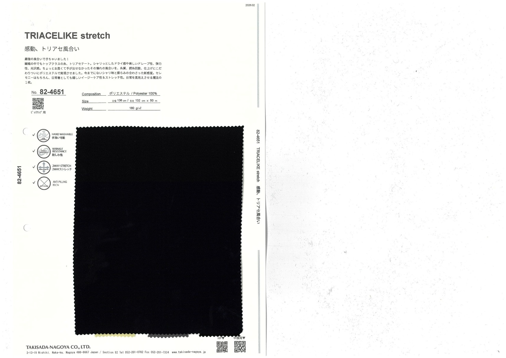 ACELIKE stretch 添加到收藏夹中 82-4651 面料、混率 Polyester 100% 规格、尺寸 132cm x 50m 预定停产商品 2026.02 放大的图像 色彩多样的放大图像 可持续的 回收 动物保护 可手洗 保温性能 接触冷感 吸汗速干 抗紫外线 抗皱 四门弹 防透光 抗沷水 日本产 意大利产 防风 抗菌防臭 抗病毒 吸湿发热 抗静电 除臭 抗起球 高弹性 吸光发热