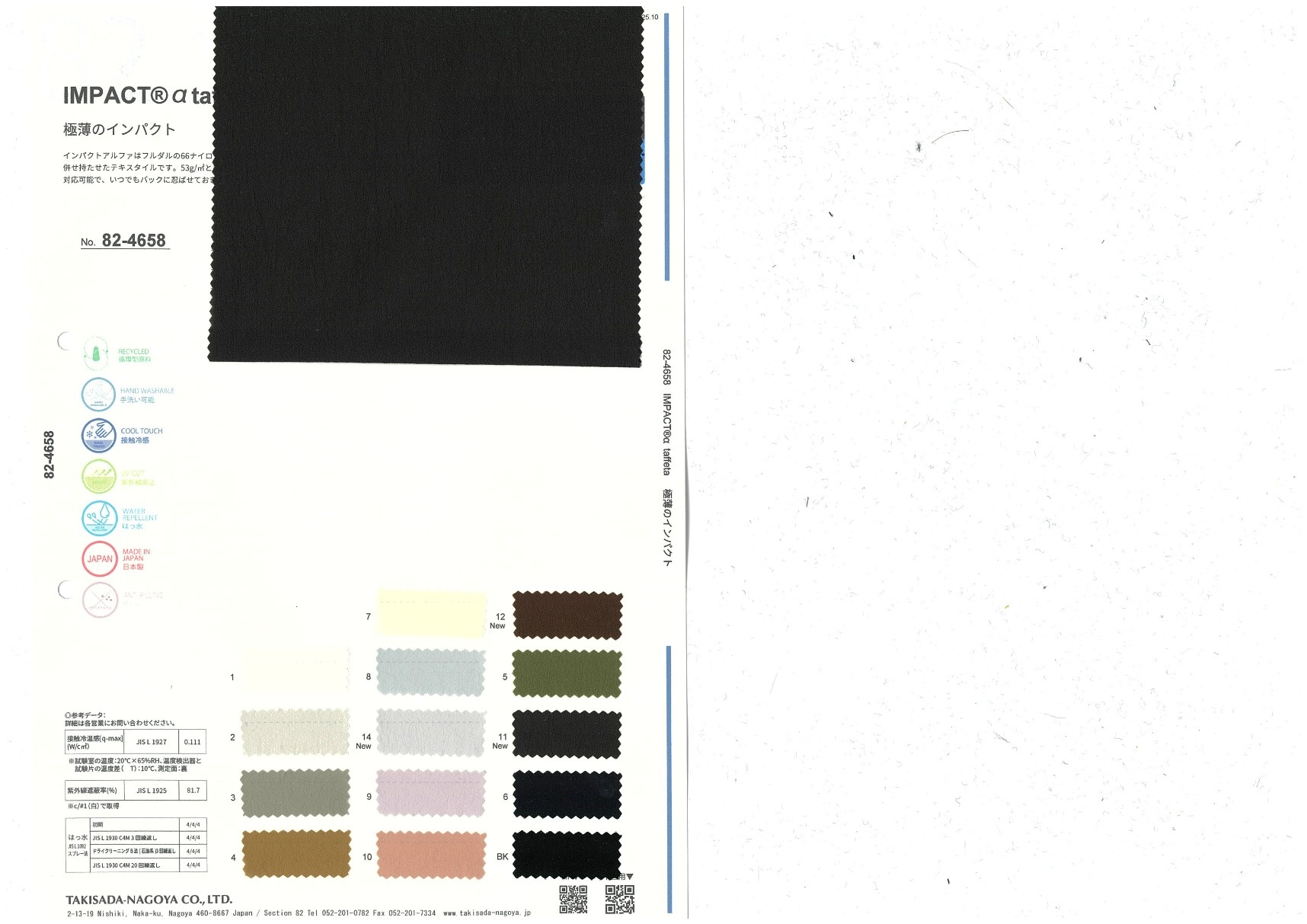 IMPACT®αtaffeta 添加到收藏夹中 82-4658 面料、混率 Nylon 100% 规格、尺寸 135cm x 50m 2025.10 放大的图像 色彩多样的放大图像 可持续的 回收 动物保护 可手洗 保温性能 接触冷感 吸汗速干 抗紫外线 抗皱 四门弹 防透光 抗沷水 日本产 意大利产 防风 抗菌防臭 抗病毒 吸湿发热 抗静电 除臭 抗起球 高弹性 吸光发热