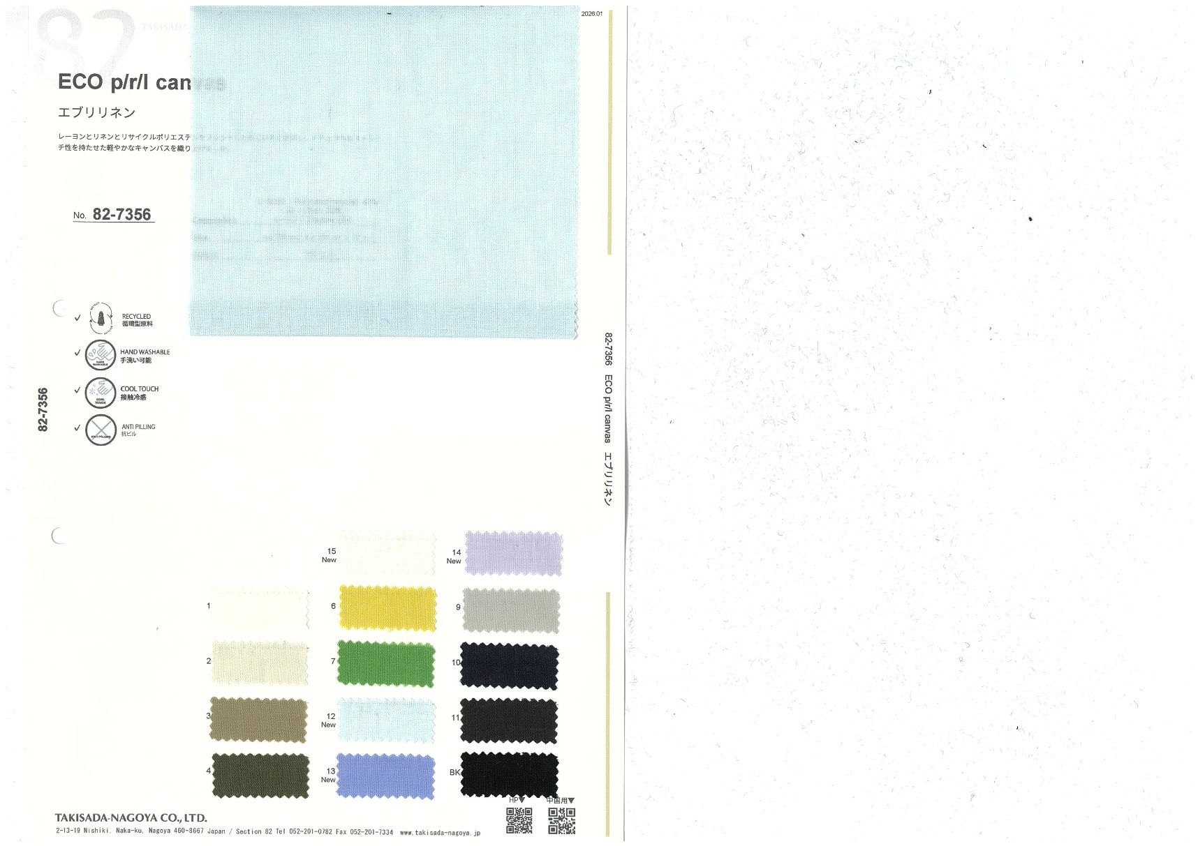 ECO p/r/l canvas 添加到收藏夹中 82-7356 面料、混率 Polyester 42% Linen 32% Rayon 26% 规格、尺寸 130cm x 50m 2026.01 放大的图像 色彩多样的放大图像 可持续的 回收 动物保护 可手洗 保温性能 接触冷感 吸汗速干 抗紫外线 抗皱 四门弹 防透光 抗沷水 日本产 意大利产 防风 抗菌防臭 抗病毒 吸湿发热 抗静电 除臭 抗起球 高弹性 吸光发热