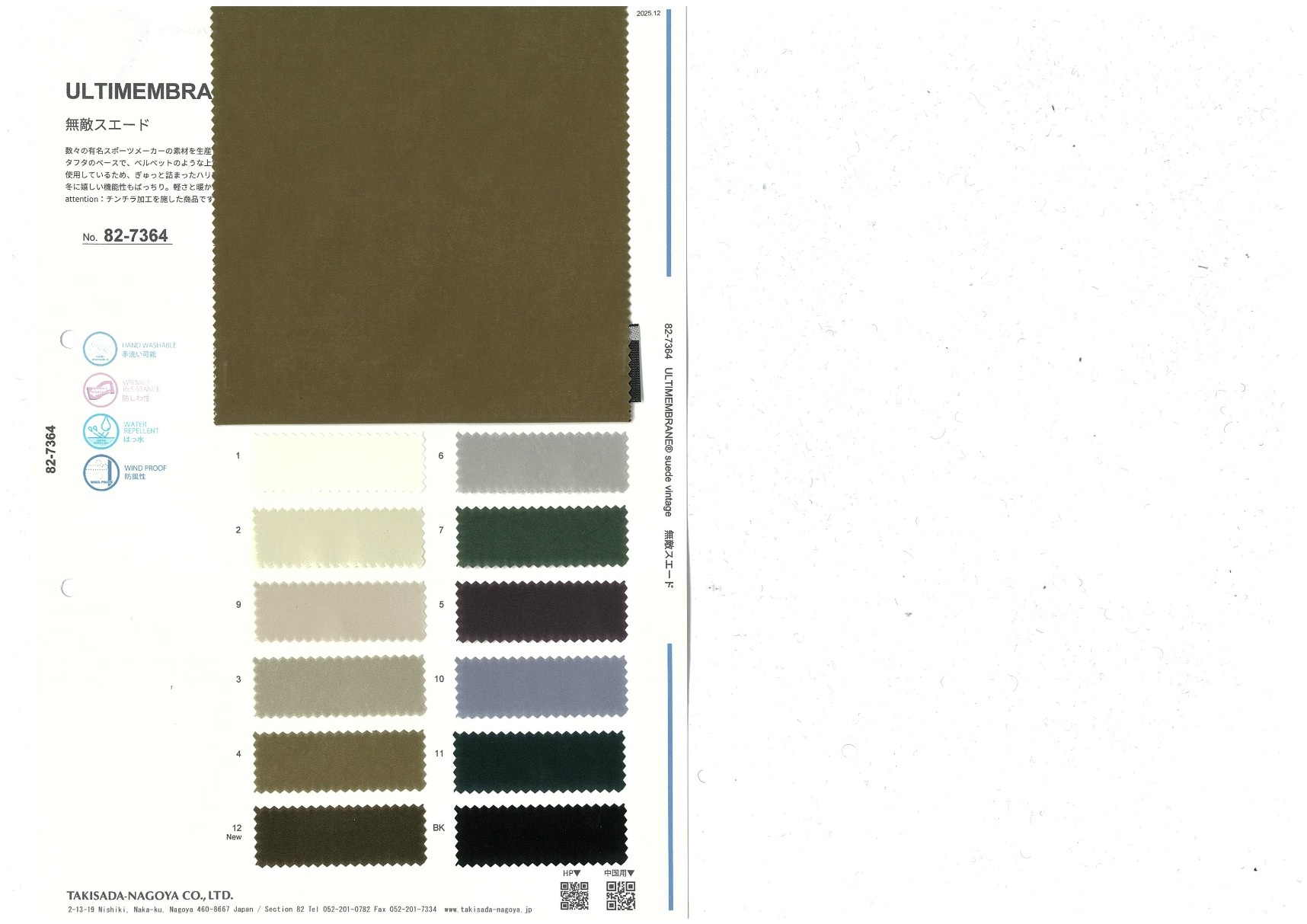ULTIMEMBRANE® suede vintage 添加到收藏夹中 82-7364 面料、混率 Polyester 80% Nylon 20% 规格、尺寸 137cm x 50m 2025.12 放大的图像 色彩多样的放大图像 可持续的 回收 动物保护 可手洗 保温性能 接触冷感 吸汗速干 抗紫外线 抗皱 四门弹 防透光 抗沷水 日本产 意大利产 防风 抗菌防臭 抗病毒 吸湿发热 抗静电 除臭 抗起球 高弹性 吸光发热