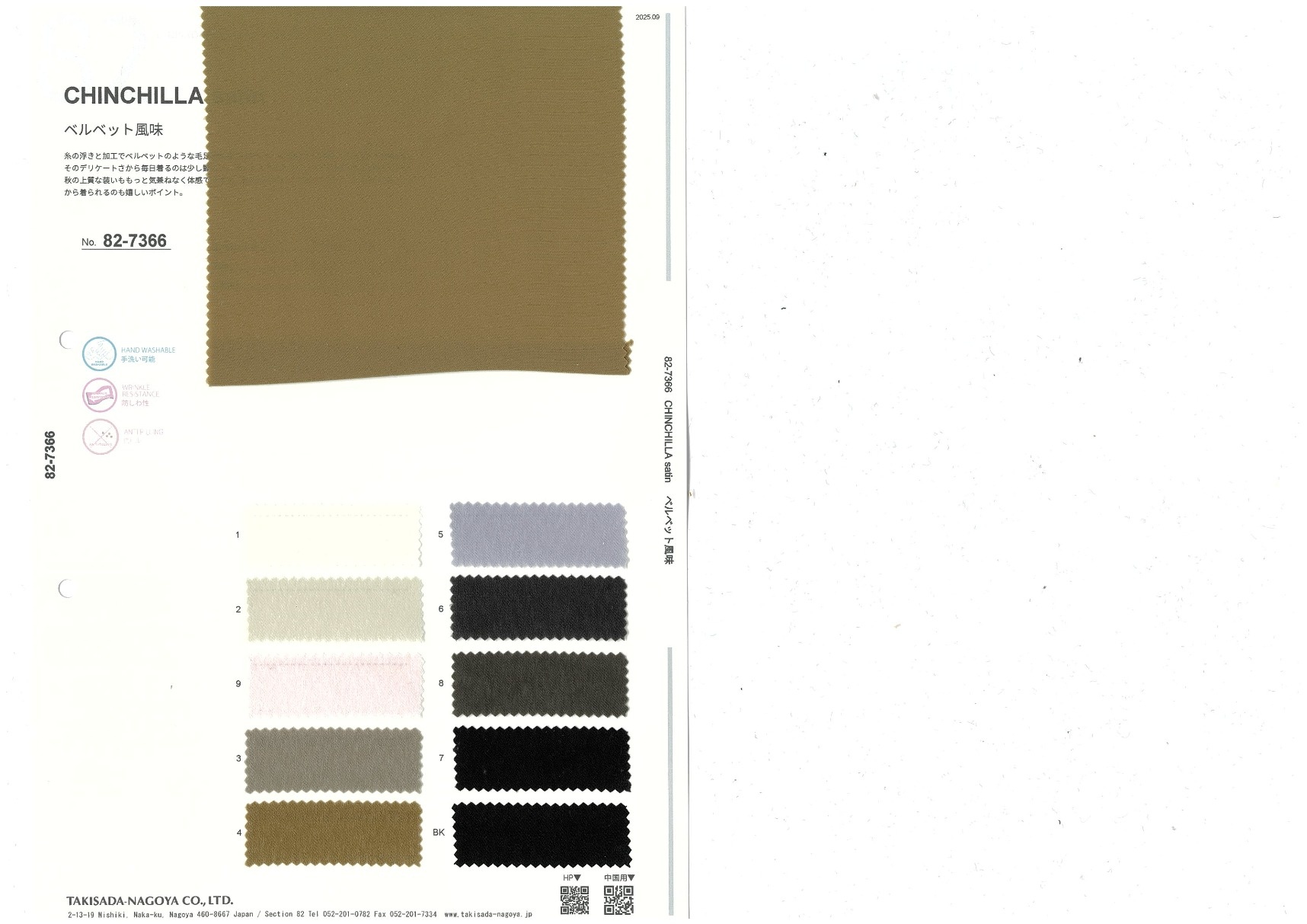 CHINCHILLA satin 添加到收藏夹中 82-7366 面料、混率 Polyester 100% 规格、尺寸 142cm x 50m 2025.09 放大的图像 色彩多样的放大图像 可持续的 回收 动物保护 可手洗 保温性能 接触冷感 吸汗速干 抗紫外线 抗皱 四门弹 防透光 抗沷水 日本产 意大利产 防风 抗菌防臭 抗病毒 吸湿发热 抗静电 除臭 抗起球 高弹性 吸光发热