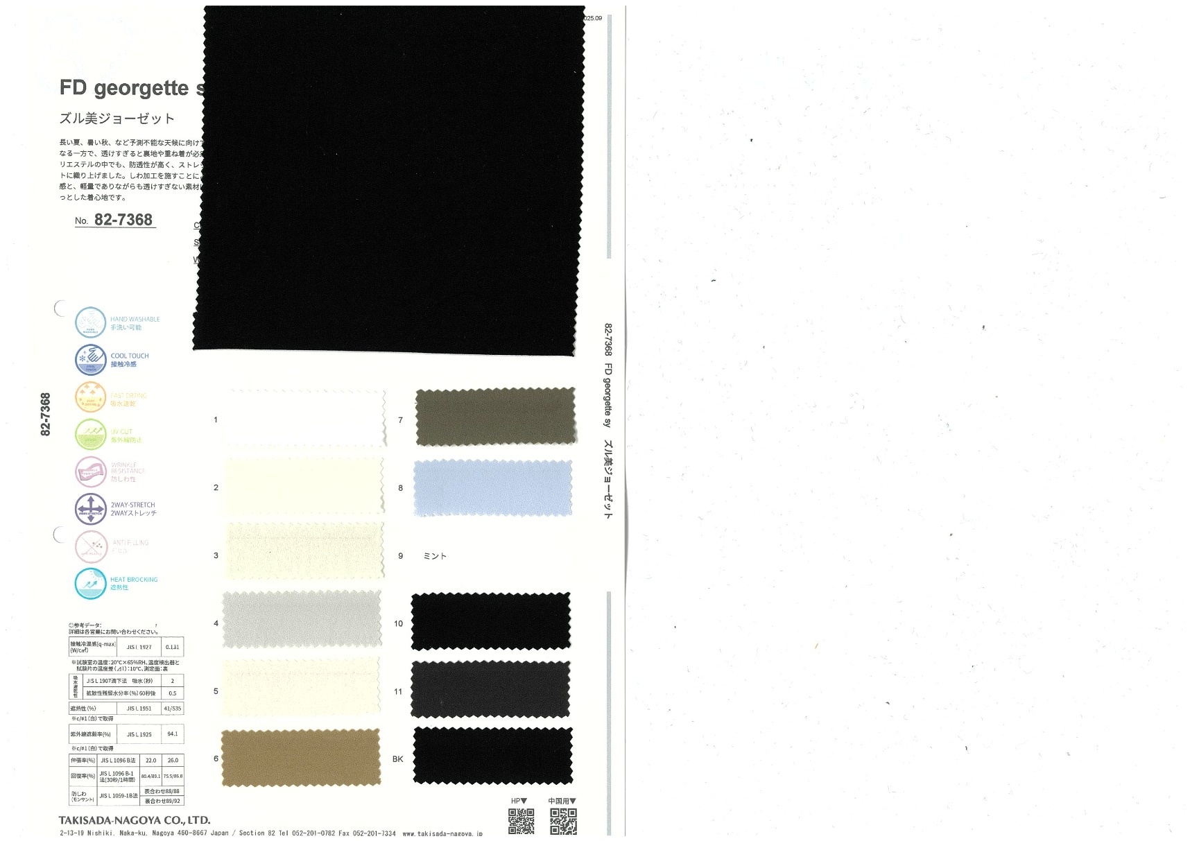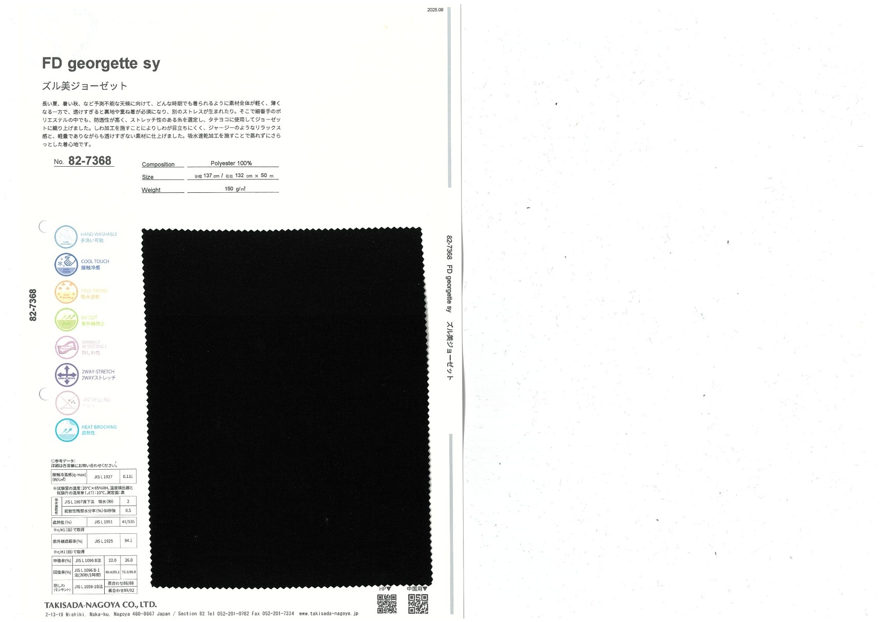 FD georgette sy 添加到收藏夹中 82-7368 面料、混率 Polyester 100% 规格、尺寸 132cm x 50m 2025.09 放大的图像 色彩多样的放大图像 可持续的 回收 动物保护 可手洗 保温性能 接触冷感 吸汗速干 抗紫外线 抗皱 四门弹 防透光 抗沷水 日本产 意大利产 防风 抗菌防臭 抗病毒 吸湿发热 抗静电 除臭 抗起球 高弹性 吸光发热