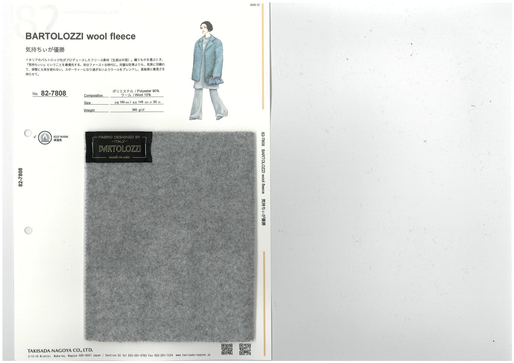 BARTLOZZI wool fleece 添加到收藏夹中 82-7808 面料、混率 Polyester 90% Wool 10% 规格、尺寸 145cm x 50m 2025.12 放大的图像 色彩多样的放大图像 可持续的 回收 动物保护 可手洗 保温性能 接触冷感 吸汗速干 抗紫外线 抗皱 四门弹 防透光 抗沷水 日本产 意大利产 防风 抗菌防臭 抗病毒 吸湿发热 抗静电 除臭 抗起球 高弹性 吸光发热