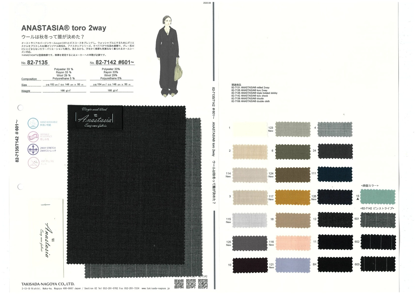 ANASTASIA® toro check 添加到收藏夹中 82-7142 面料、混率 Polyester 33% Rayon 33% Wool 29% Polyurethane 5% 规格、尺寸 148cm x 50m 预定停产商品 2025.08 放大的图像 色彩多样的放大图像 可持续的 回收 动物保护 可手洗 保温性能 接触冷感 吸汗速干 抗紫外线 抗皱 四门弹 防透光 抗沷水 日本产 意大利产 防风 抗菌防臭 抗病毒 吸湿发热 抗静电 除臭 抗起球 高弹性 吸光发热