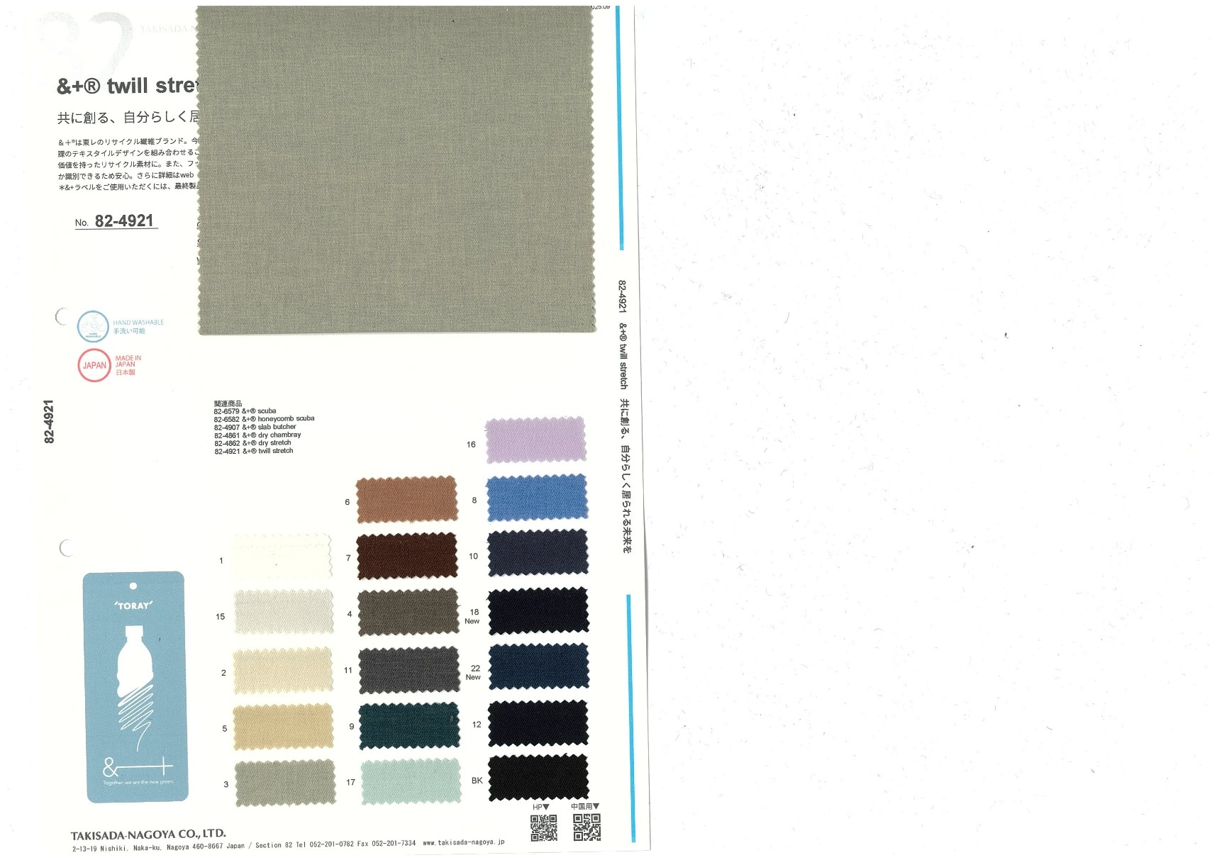 &+® twill stretch 添加到收藏夹中 82-4921 面料、混率 Polyurethane 3% 规格、尺寸 132cm x 50m 2025.09 放大的图像 色彩多样的放大图像 可持续的 回收 动物保护 可手洗 保温性能 接触冷感 吸汗速干 抗紫外线 抗皱 四门弹 防透光 抗沷水 日本产 意大利产 防风 抗菌防臭 抗病毒 吸湿发热 抗静电 除臭 抗起球 高弹性 吸光发热