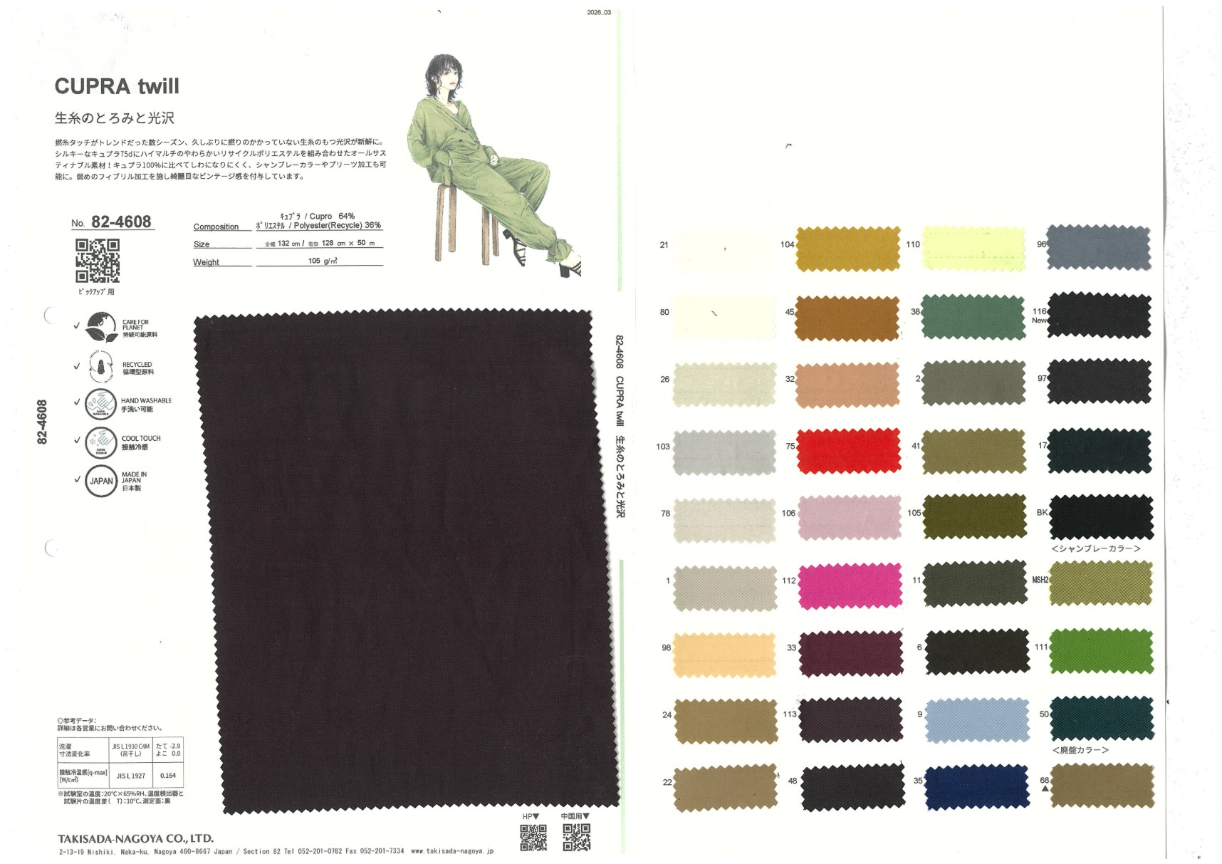 原纤维处理是铜氨面料最大的特点。纬向混合高支涤纶,制成不过于休闲的雅致纤维素纤维面料。另外,从环境(环保)角度出发,海外对铜氨纤维也多有关注。铜氨纤维使用棉花种子周边的棉绒制成,是利用制作棉线时不被使用之部分的环保原料。