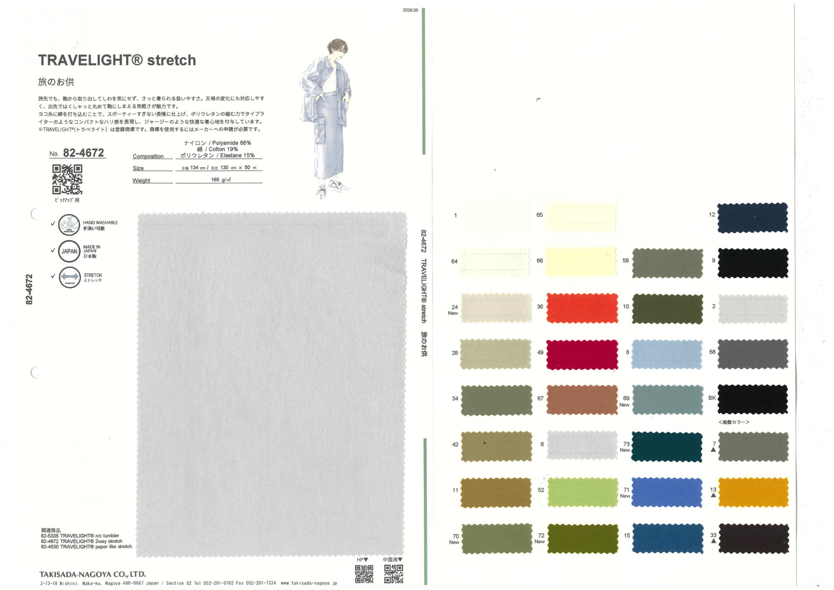 旅途中从包中取出,不用担心褶皱而可以立即穿上。外出遇到天气变化时,可随意揉成一团放入包中。氨纶的收缩力使此款面料如平纹针织面料般具有双向伸展后能充分复原的特性。