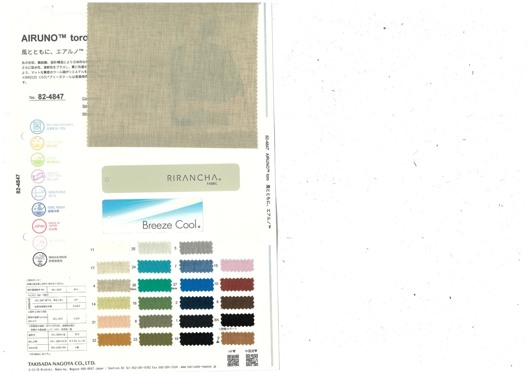 AIRUNO™ toro 添加到收藏夹中 82-4847 面料、混率 Polyester 100% 规格、尺寸 140cm x 48m 2025.11 放大的图像 色彩多样的放大图像 可持续的 回收 动物保护 可手洗 保温性能 接触冷感 吸汗速干 抗紫外线 抗皱 四门弹 防透光 抗沷水 日本产 意大利产 防风 抗菌防臭 抗病毒 吸湿发热 抗静电 除臭 抗起球 高弹性 吸光发热