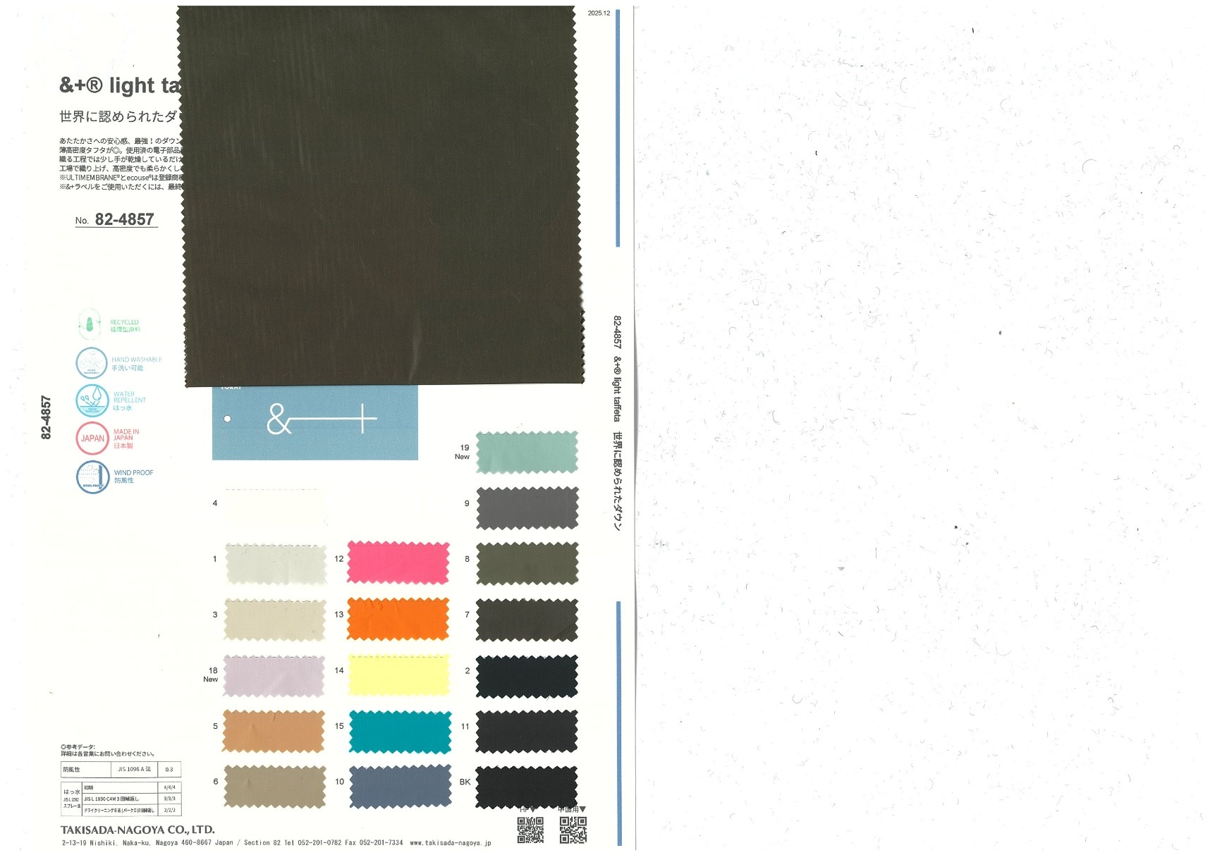 ULTIMEMBRANE®light taffeta 添加到收藏夹中 82-4857 面料、混率 Polyester 100% 规格、尺寸 148cm x 100m 2025.12 放大的图像 色彩多样的放大图像 可持续的 回收 动物保护 可手洗 保温性能 接触冷感 吸汗速干 抗紫外线 抗皱 四门弹 防透光 抗沷水 日本产 意大利产 防风 抗菌防臭 抗病毒 吸湿发热 抗静电 除臭 抗起球 高弹性 吸光发热