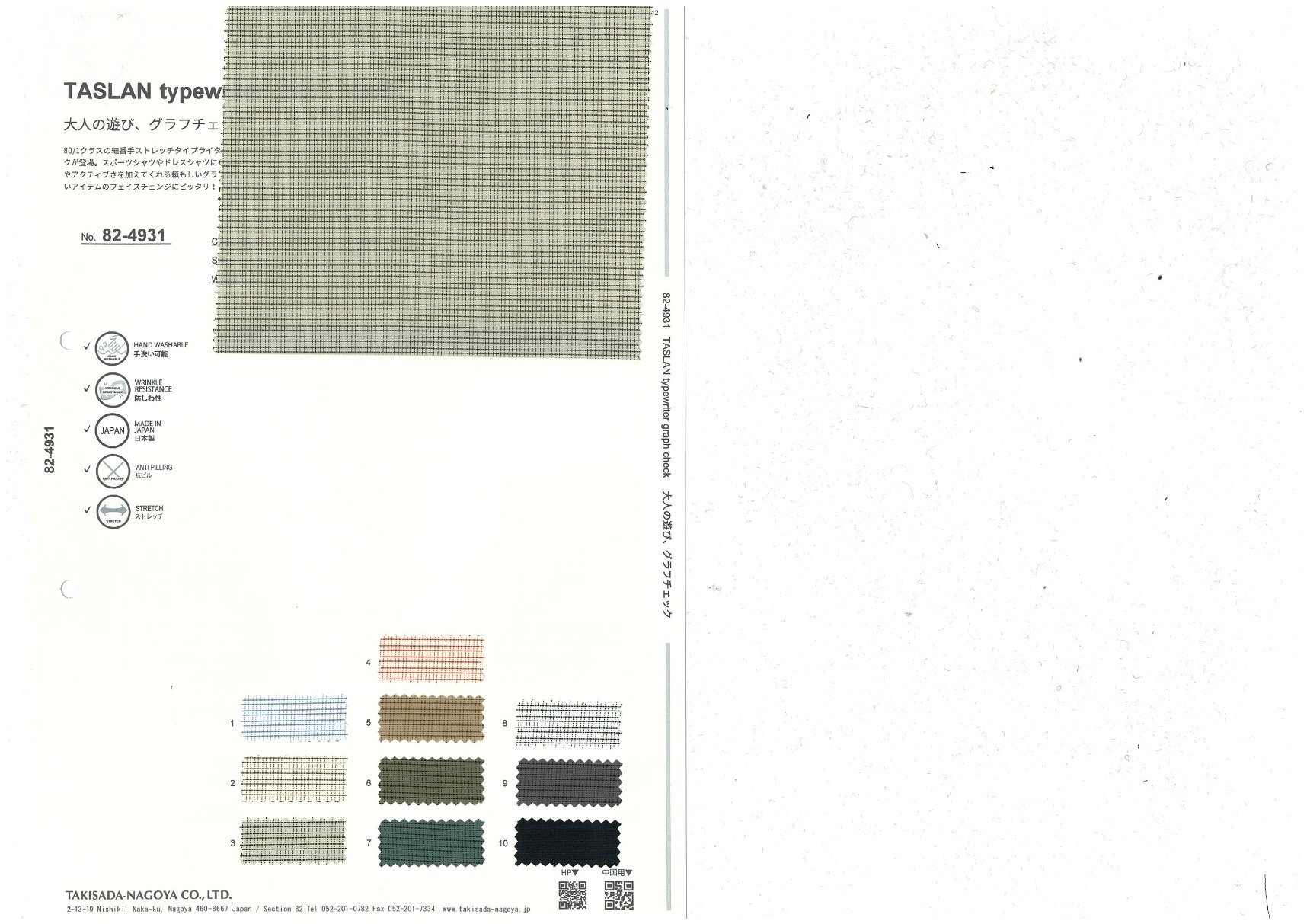 TASLAN typewriter graph check 添加到收藏夹中 82-4931 面料、混率 Polyester 100% 规格、尺寸 142cm x 50m 预定停产商品 2025.12 放大的图像 色彩多样的放大图像 可持续的 回收 动物保护 可手洗 保温性能 接触冷感 吸汗速干 抗紫外线 抗皱 四门弹 防透光 抗沷水 日本产 意大利产 防风 抗菌防臭 抗病毒 吸湿发热 抗静电 除臭 抗起球 高弹性 吸光发热