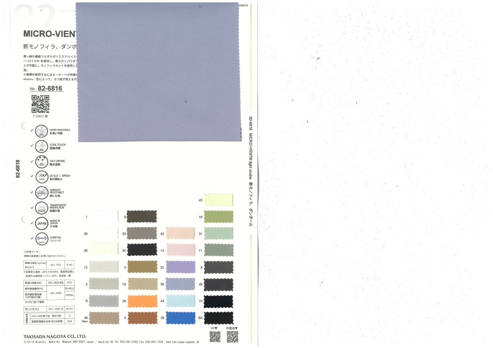 MICRO-VIENT® light scuba 添加到收藏夹中 82-6816 面料、混率 Polyester 91% Polyurethane 9% 规格、尺寸 140cm x 33m 2026.03 放大的图像 色彩多样的放大图像 可持续的 回收 动物保护 可手洗 保温性能 接触冷感 吸汗速干 抗紫外线 抗皱 四门弹 防透光 抗沷水 日本产 意大利产 防风 抗菌防臭 抗病毒 吸湿发热 抗静电 除臭 抗起球 高弹性 吸光发热