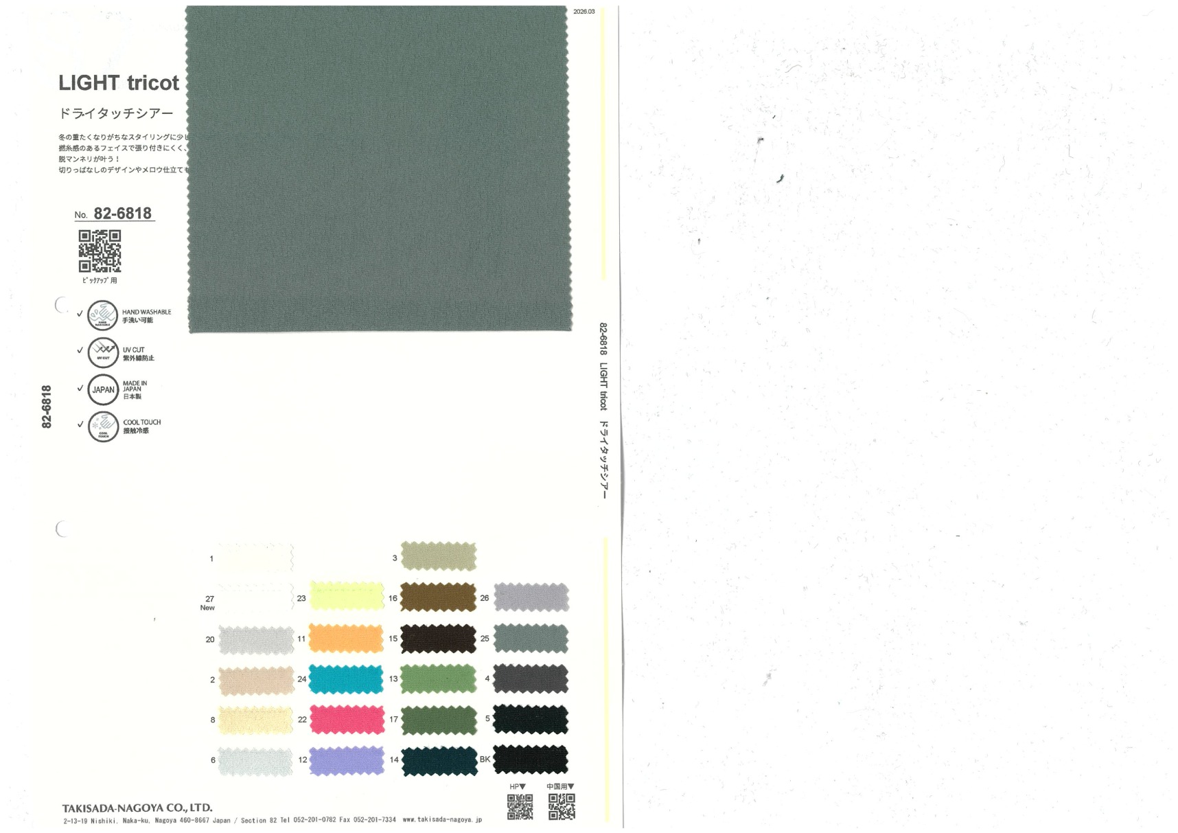 LIGHT tricot 添加到收藏夹中 82-6818 面料、混率 Polyester 100% 规格、尺寸 144cm x 50m 2026.03 放大的图像 色彩多样的放大图像 可持续的 回收 动物保护 可手洗 保温性能 接触冷感 吸汗速干 抗紫外线 抗皱 四门弹 防透光 抗沷水 日本产 意大利产 防风 抗菌防臭 抗病毒 吸湿发热 抗静电 除臭 抗起球 高弹性 吸光发热