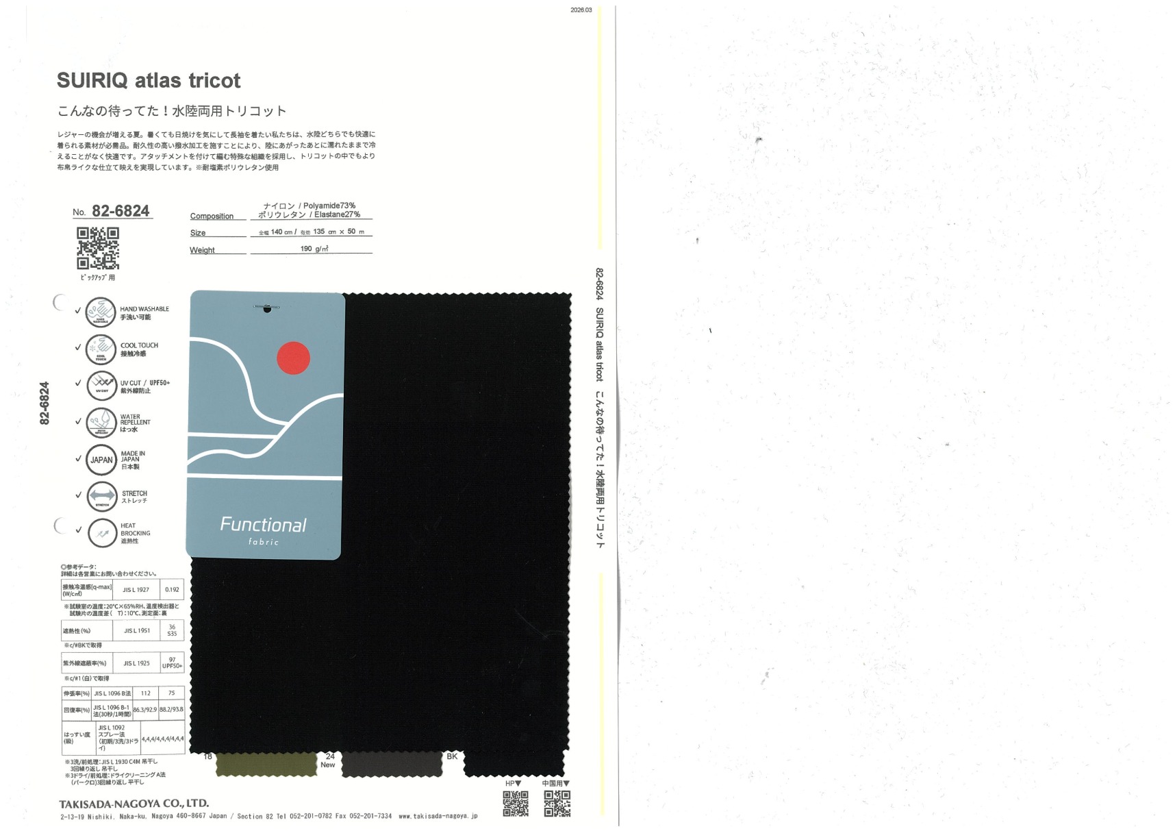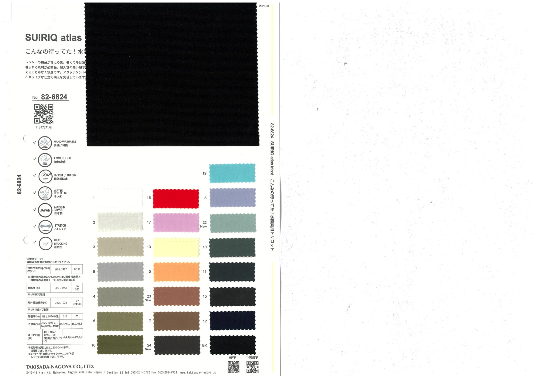 SUIRIQ atlas tricot 添加到收藏夹中 82-6824 面料、混率 Nylon 73% Polyurethane 27% 规格、尺寸 135cm x 50m 2026.03 放大的图像 色彩多样的放大图像 可持续的 回收 动物保护 可手洗 保温性能 接触冷感 吸汗速干 抗紫外线 抗皱 四门弹 防透光 抗沷水 日本产 意大利产 防风 抗菌防臭 抗病毒 吸湿发热 抗静电 除臭 抗起球 高弹性 吸光发热