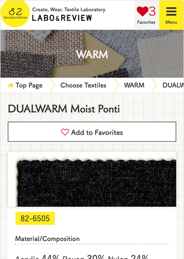 If you find a textile you are interested in, tap the "♡ Add to Favorites List" button at the top of the page or in the middle to add it to your Favorites.