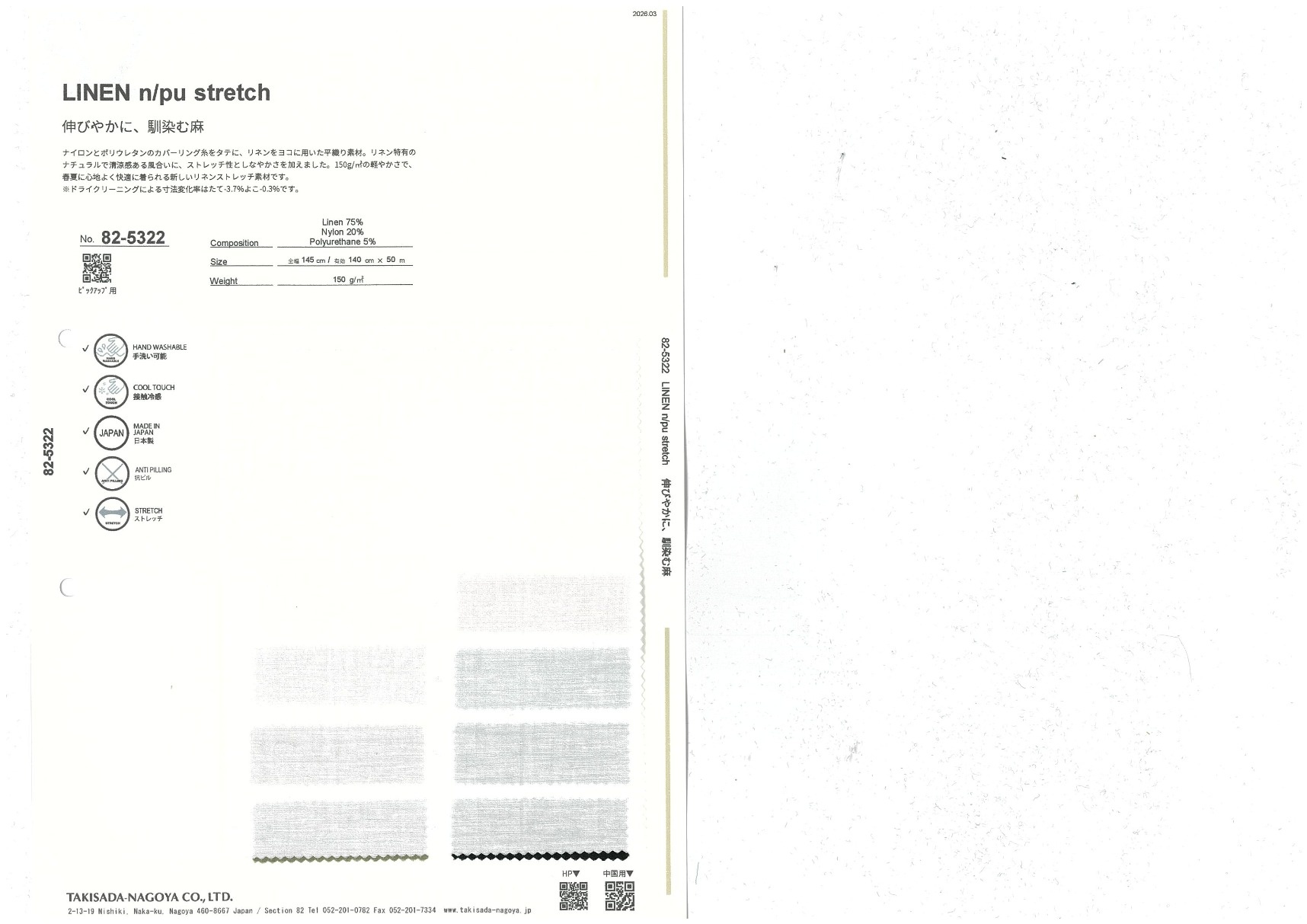 Linen 75% Nylon 20% Polyurethane 5%