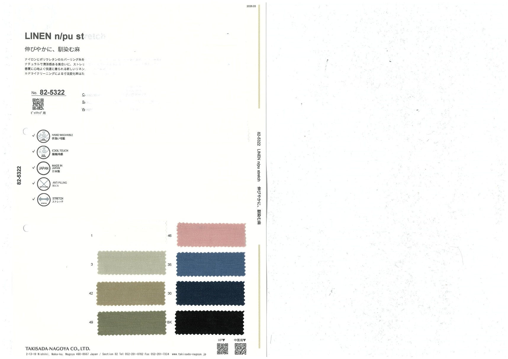 A website by Takisada-Nagoya Co., Ltd.'s Section 82, which develops, purchases, and sells textiles for women's wear