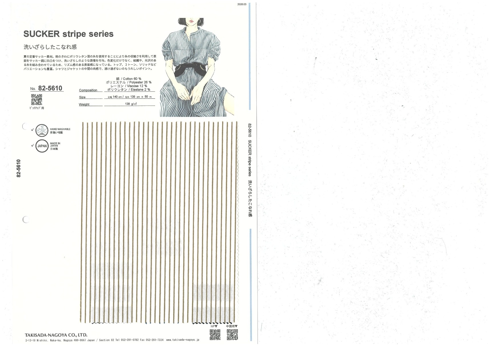 A website by Takisada-Nagoya Co., Ltd.'s Section 82, which develops, purchases, and sells textiles for women's wear