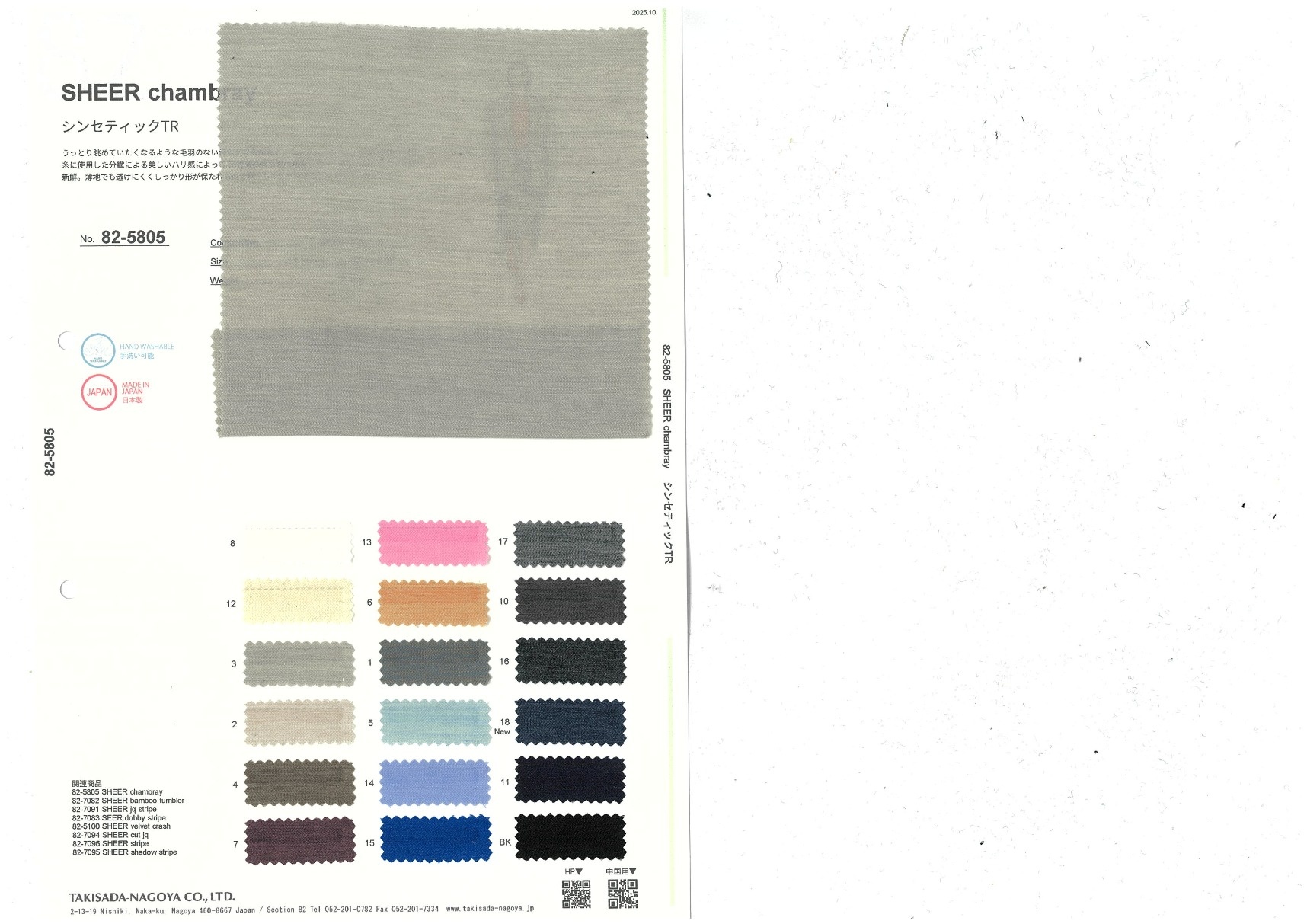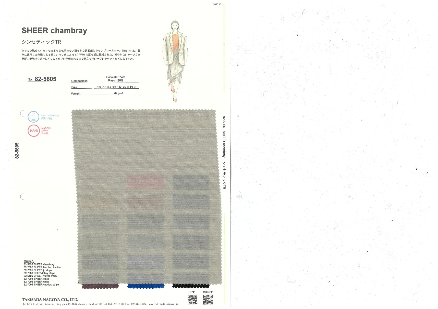 A website by Takisada-Nagoya Co., Ltd.'s Section 82, which develops, purchases, and sells textiles for women's wear
