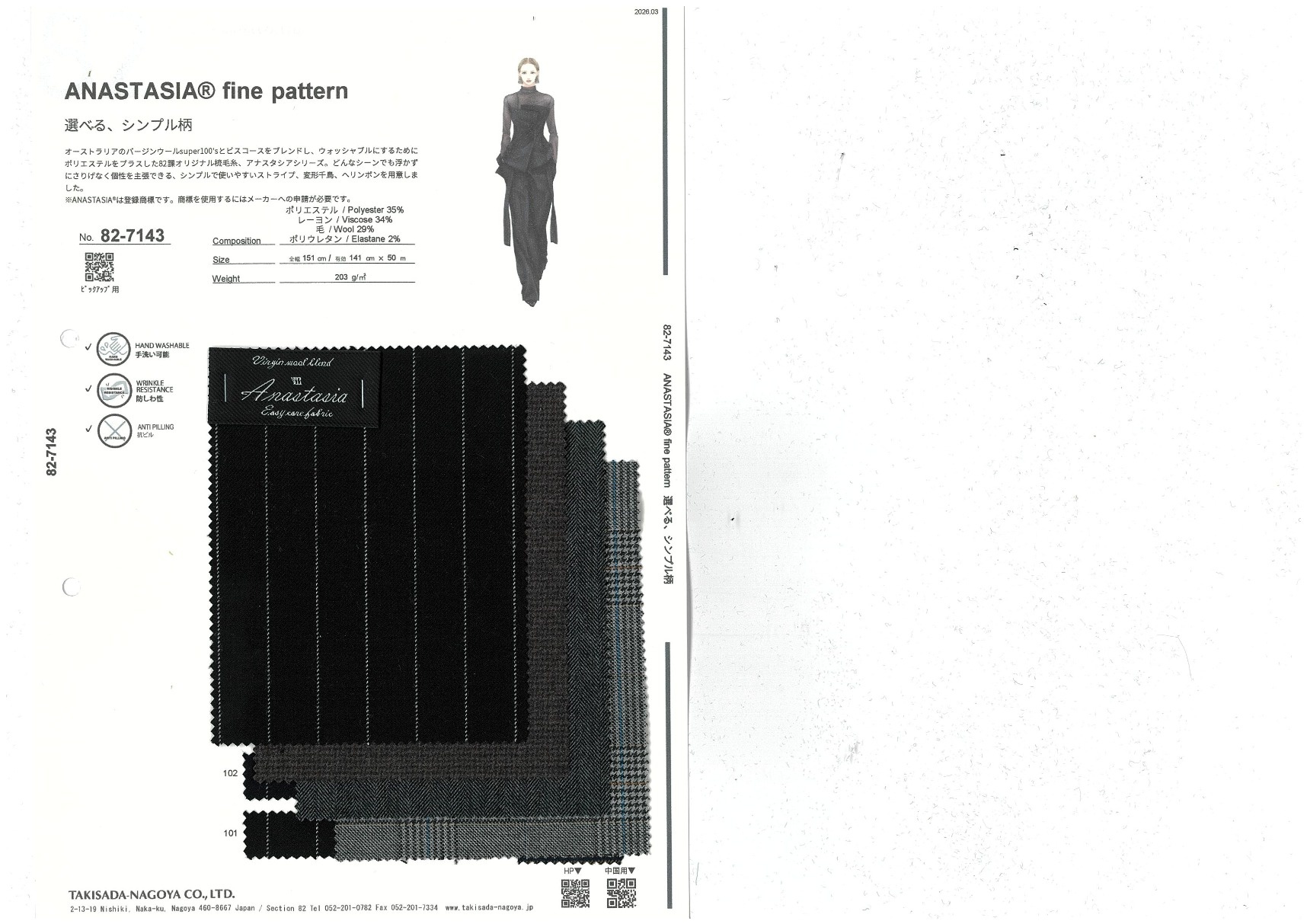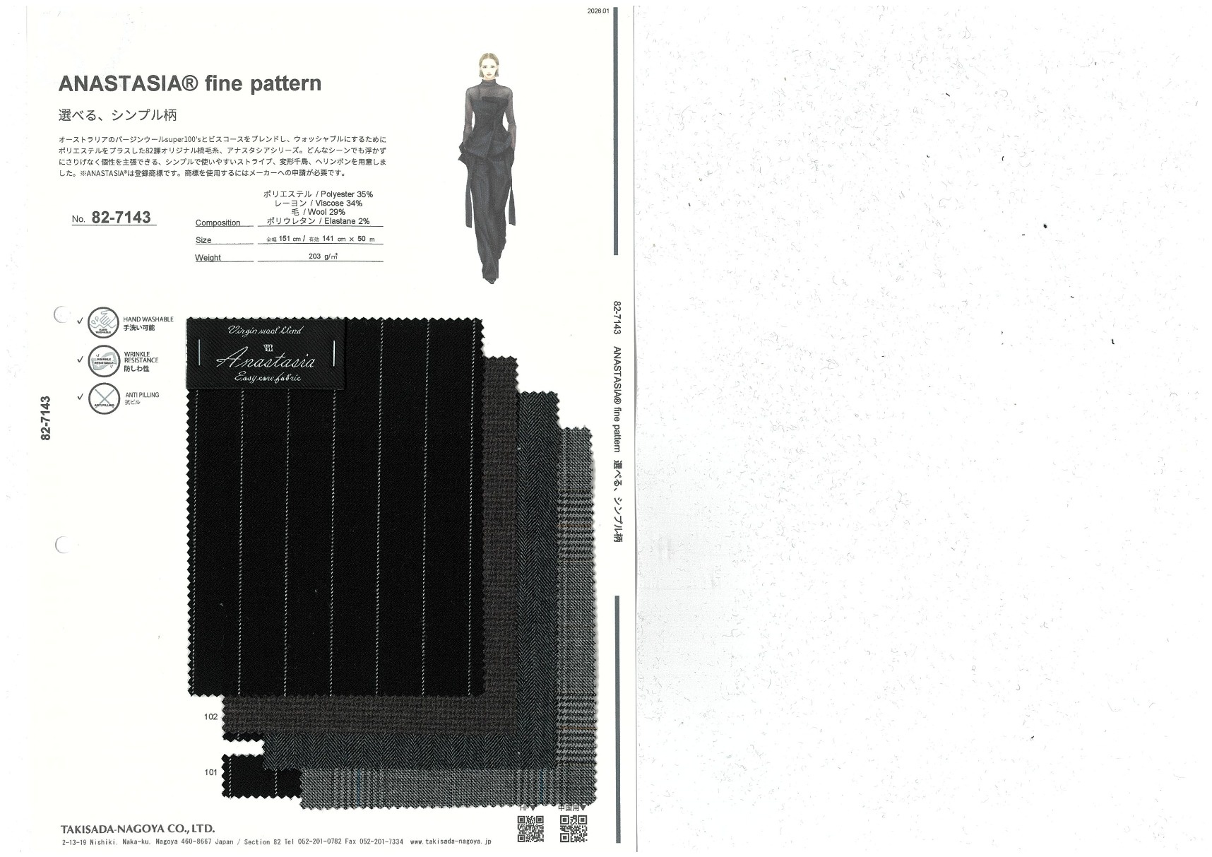 A website by Takisada-Nagoya Co., Ltd.'s Section 82, which develops, purchases, and sells textiles for women's wear