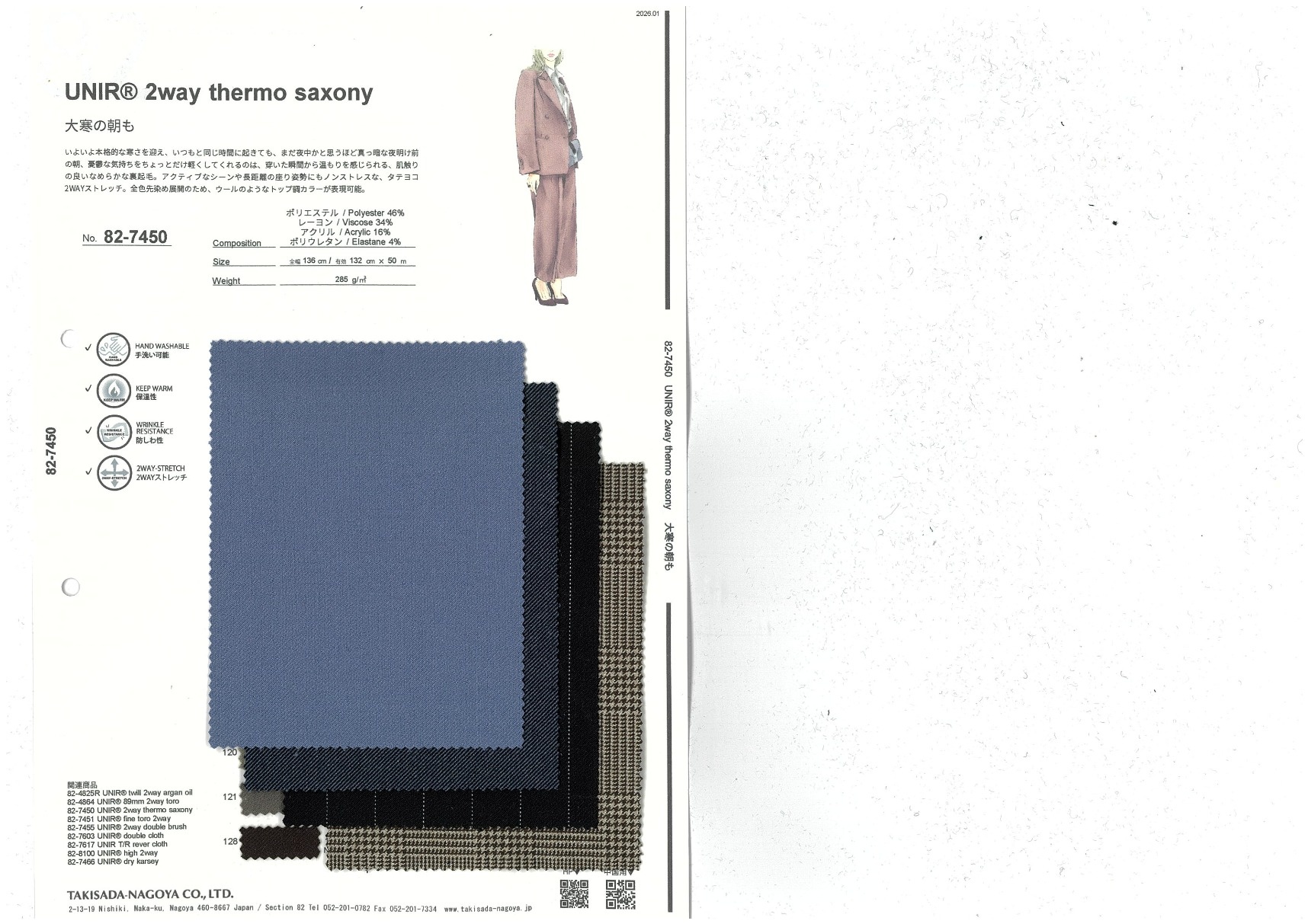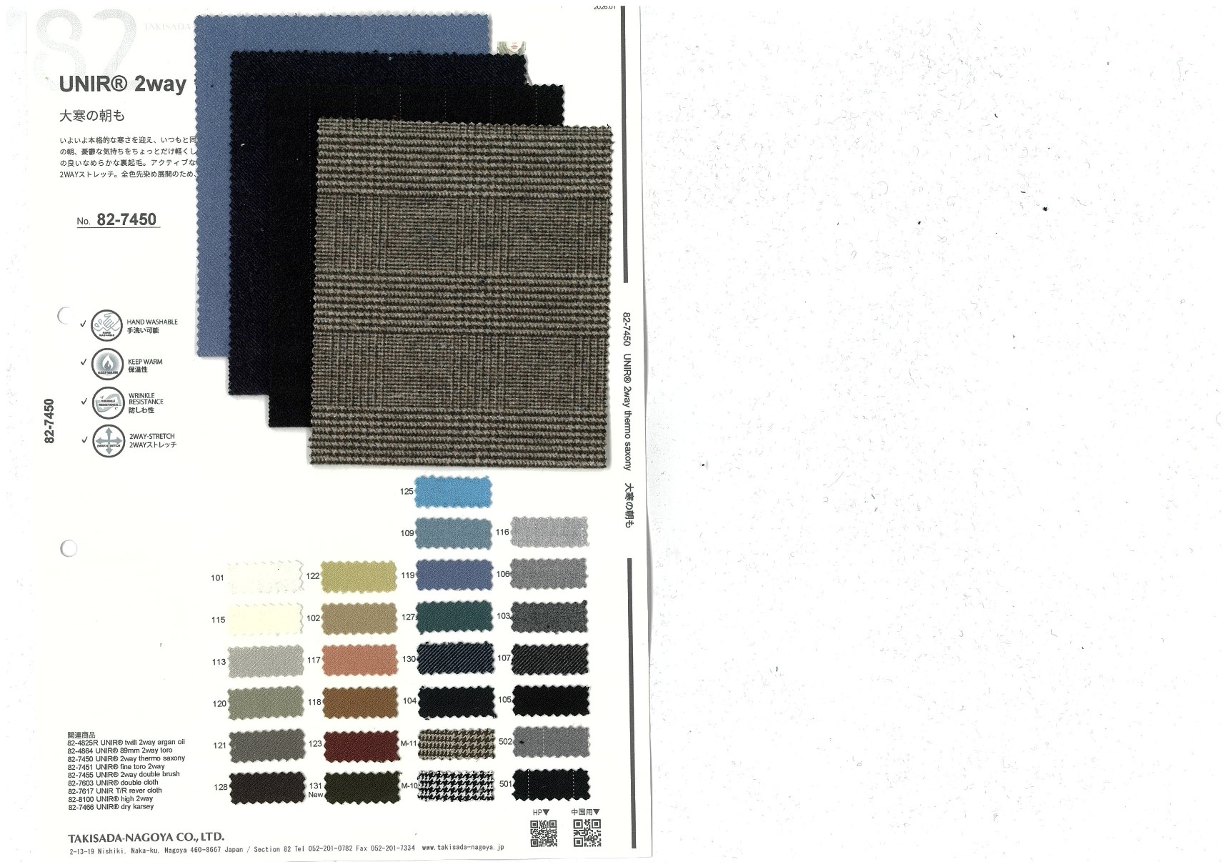 A website by Takisada-Nagoya Co., Ltd.'s Section 82, which develops, purchases, and sells textiles for women's wear