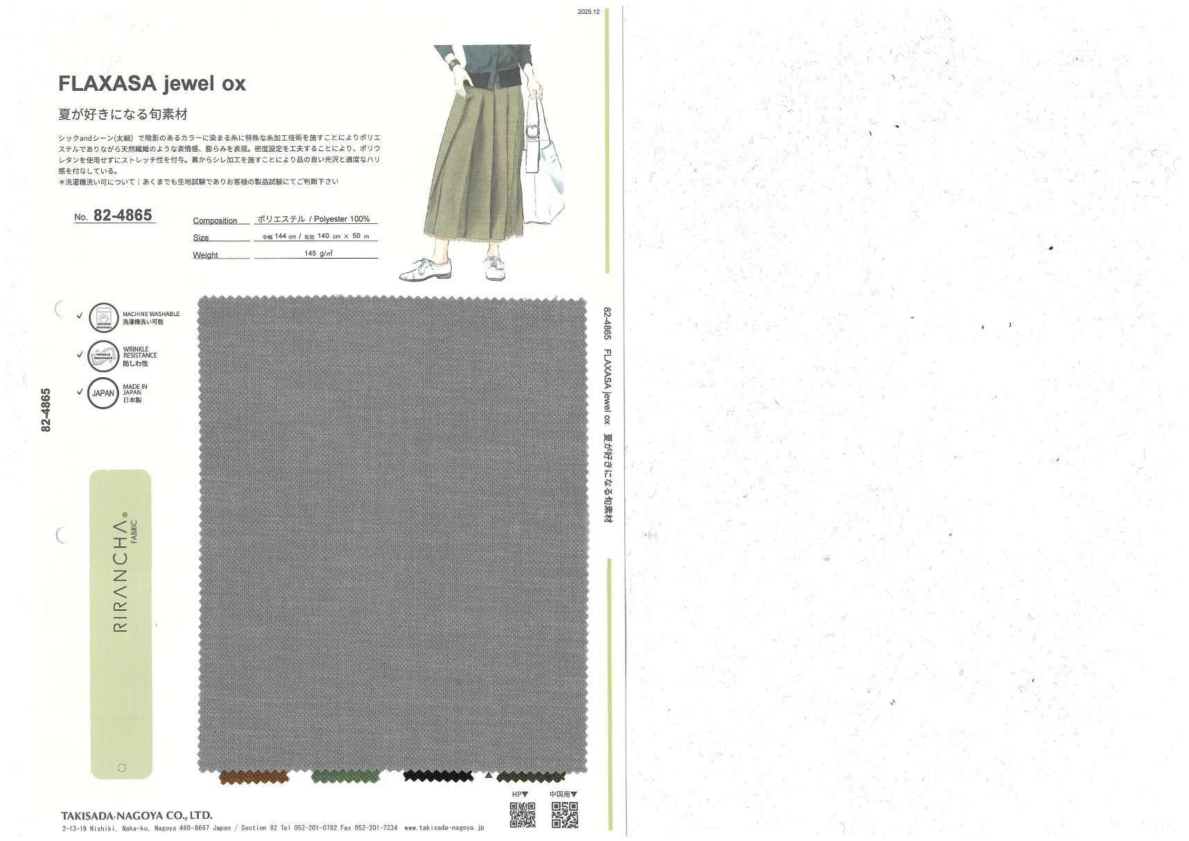 Polyester has been given an appearance like natural-fiber and extra volume by applying a special yarn processing technology to a thick and thin yarn that can be dyed in uneven colors. By working out the right density to set, stretch has been added without using any polyurethane. A ciré finish is applied to the reverse side, giving the fabric a classy luster and moderate firmness.