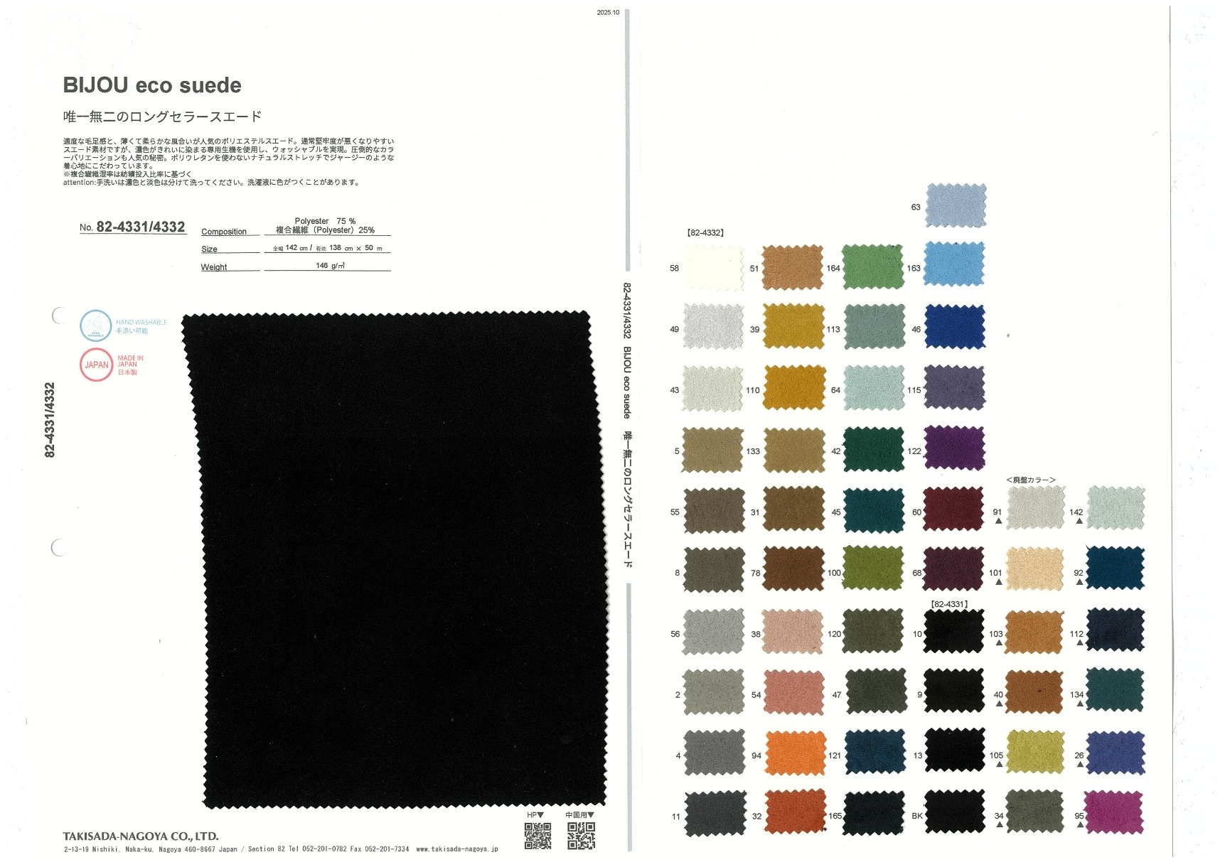 A fake suede produced in Mitsuke City, Niigata Prefecture. The long pile and real texture change people's perceptions from "It's fake" to "I want to try it." It uses a special greige fabric that dyes well in dark colors. The overwhelming range of colors is also one of the secrets to its popularity. With natural stretch achieved without using any polyurethane, it's as comfortable as jersey. It's an all-season material that can be worn without a care for everything from exercise to leisure.