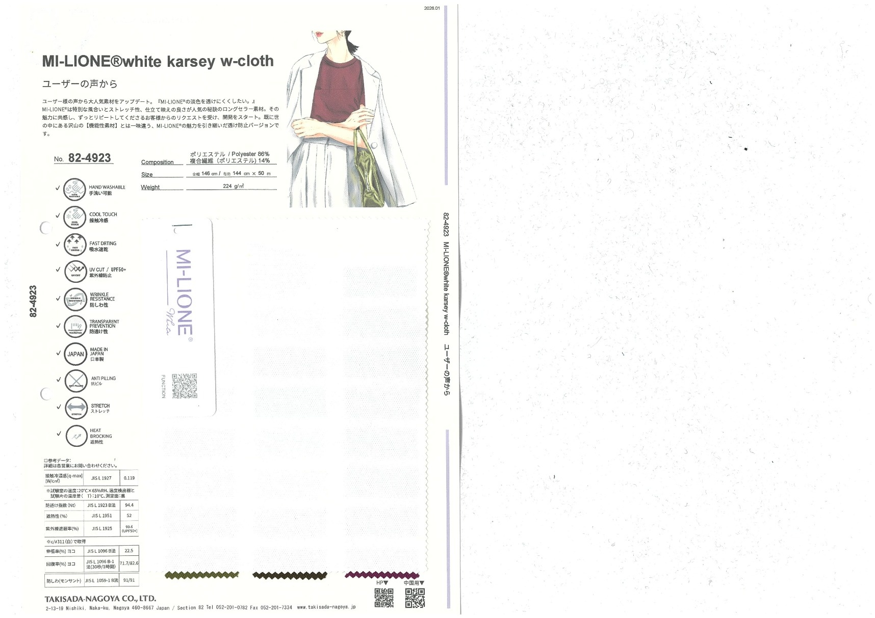 A website by Takisada-Nagoya Co., Ltd.'s Section 82, which develops, purchases, and sells textiles for women's wear