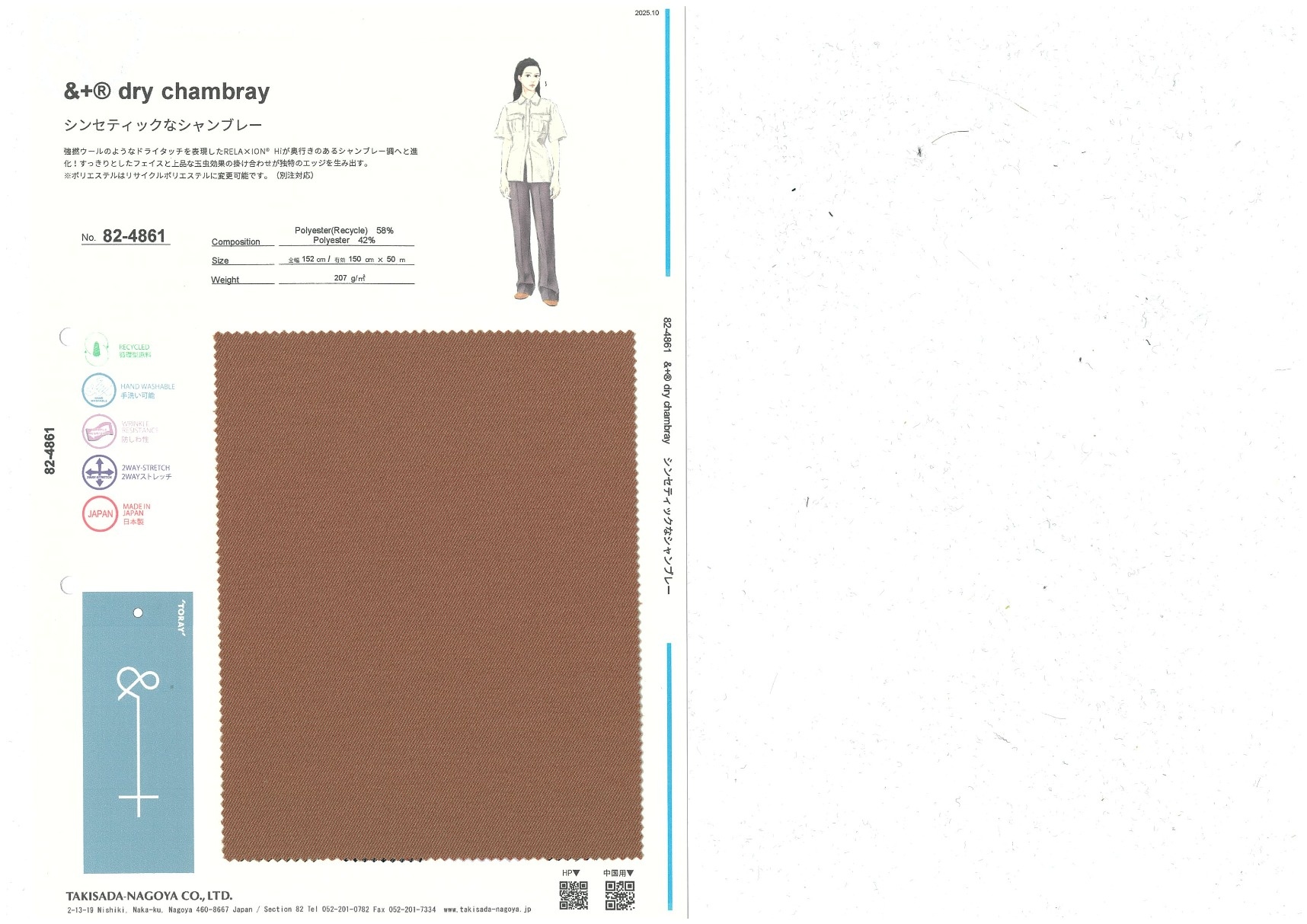 A website by Takisada-Nagoya Co., Ltd.'s Section 82, which develops, purchases, and sells textiles for women's wear