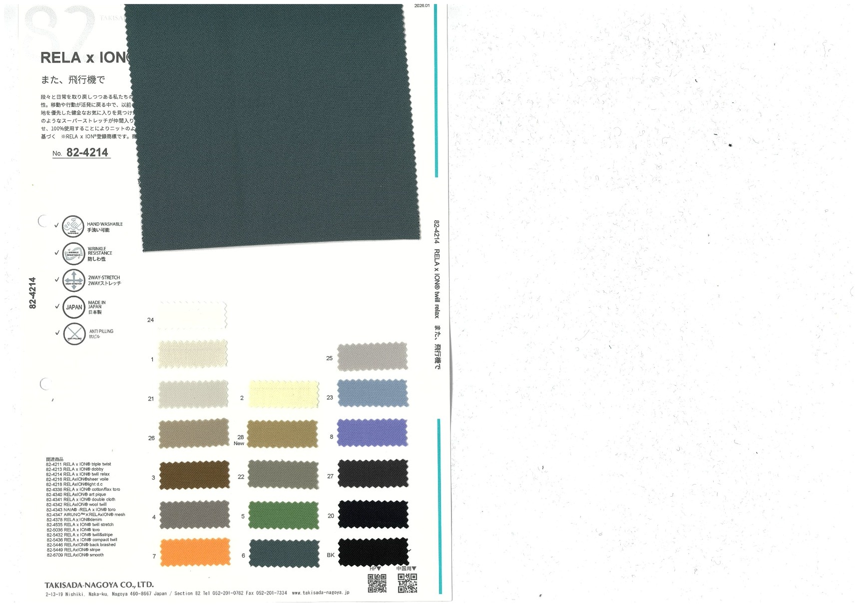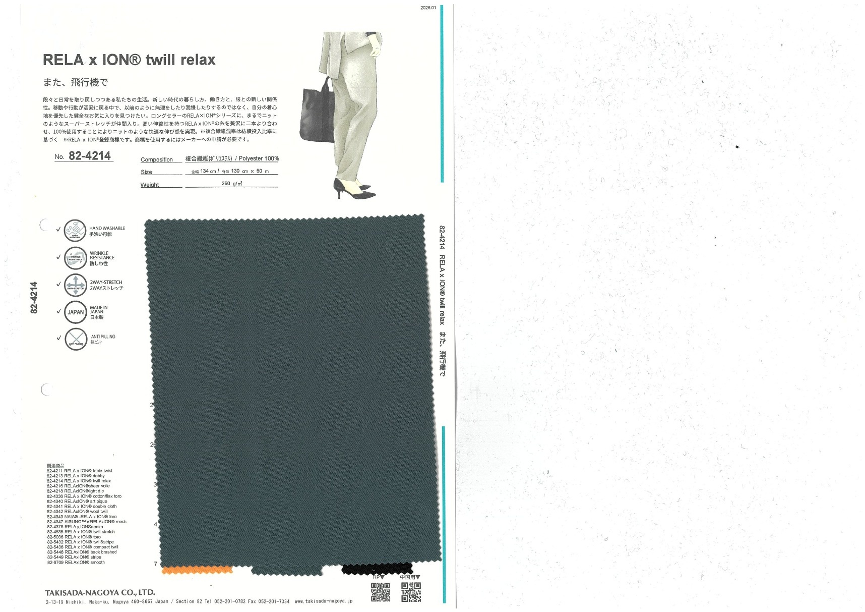A website by Takisada-Nagoya Co., Ltd.'s Section 82, which develops, purchases, and sells textiles for women's wear