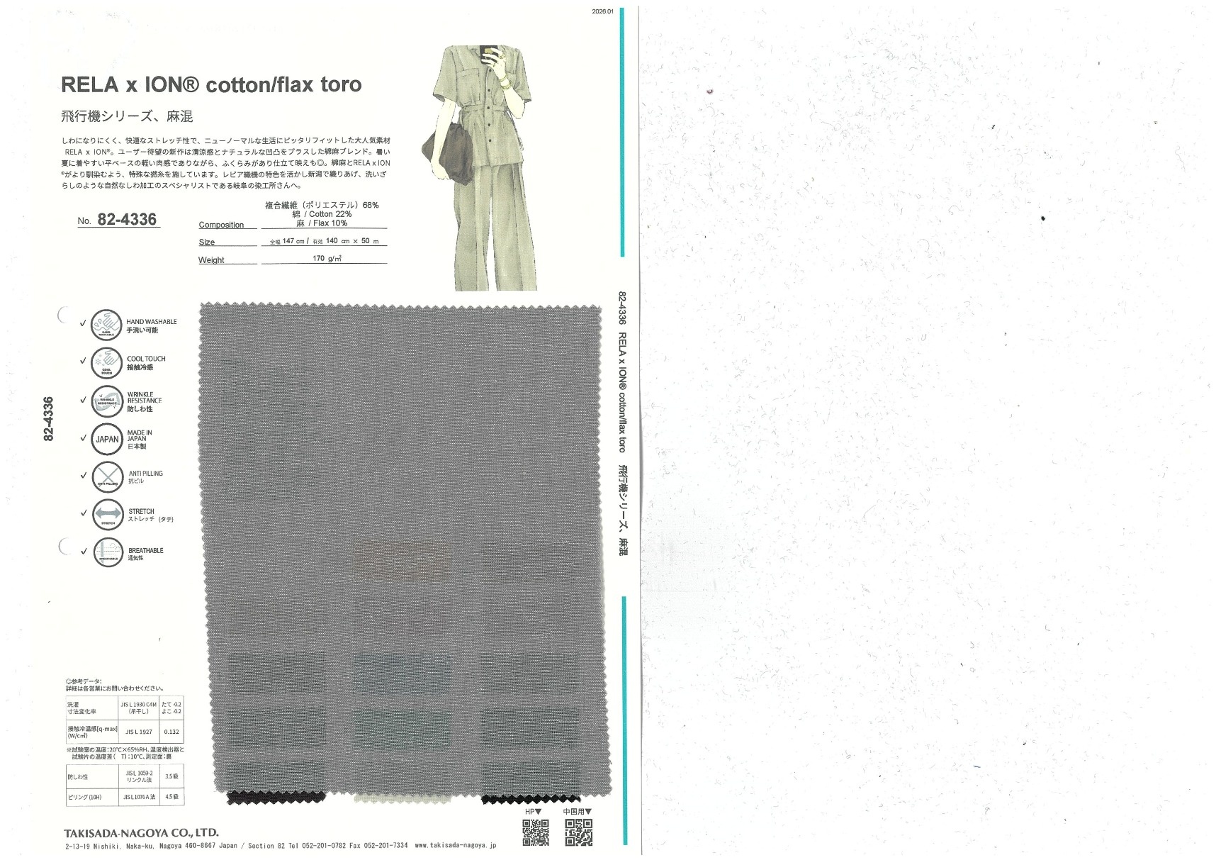 A website by Takisada-Nagoya Co., Ltd.'s Section 82, which develops, purchases, and sells textiles for women's wear