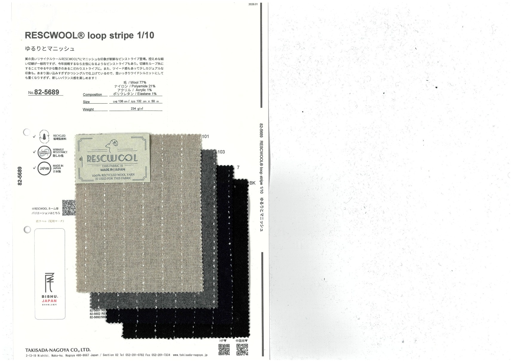 A website by Takisada-Nagoya Co., Ltd.'s Section 82, which develops, purchases, and sells textiles for women's wear