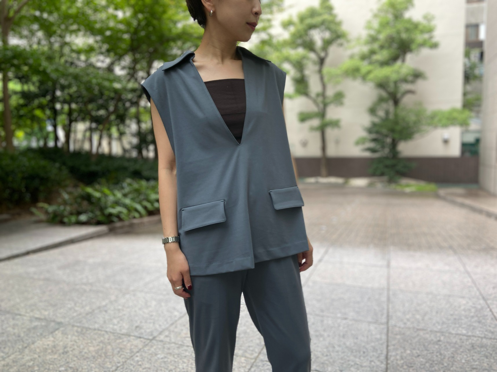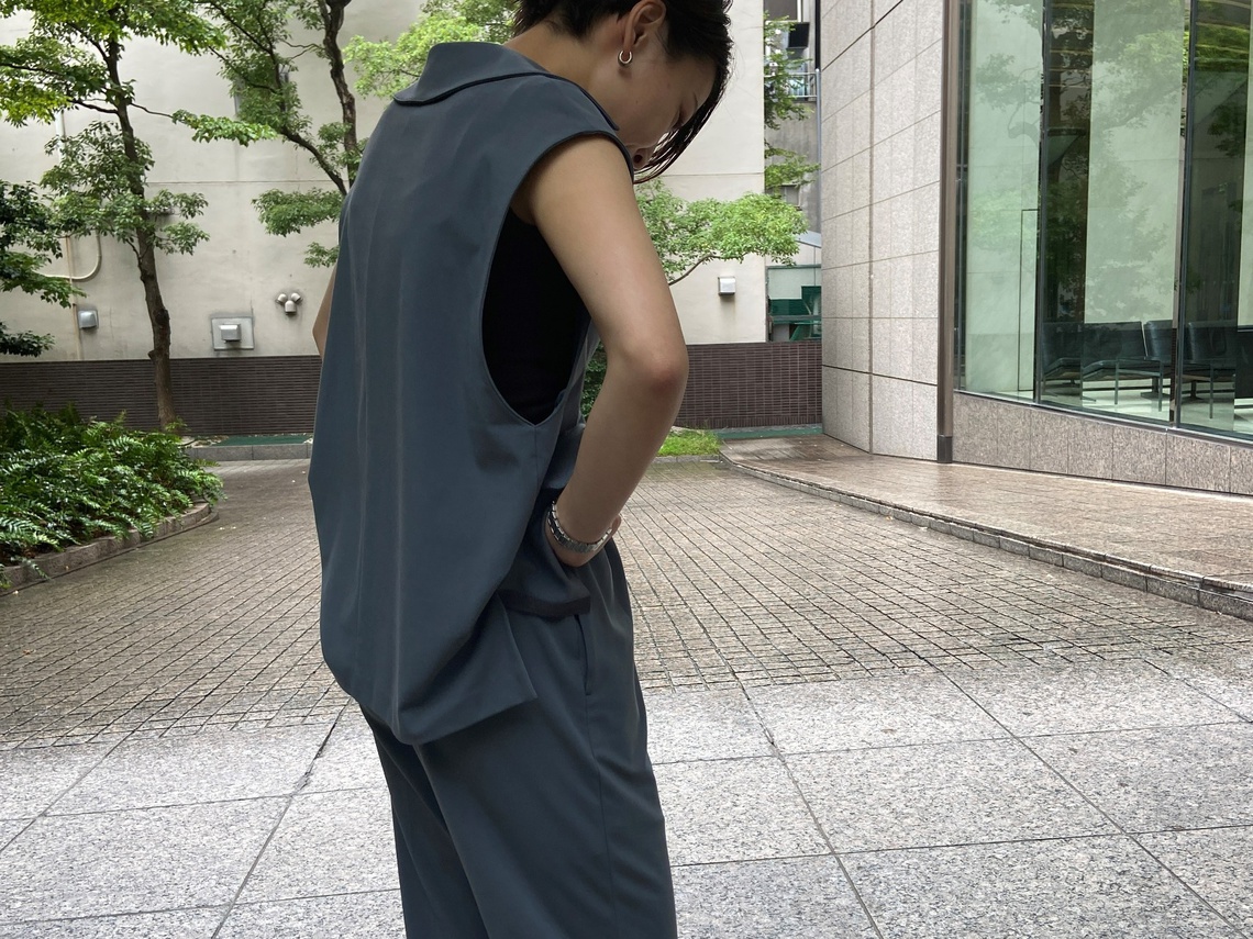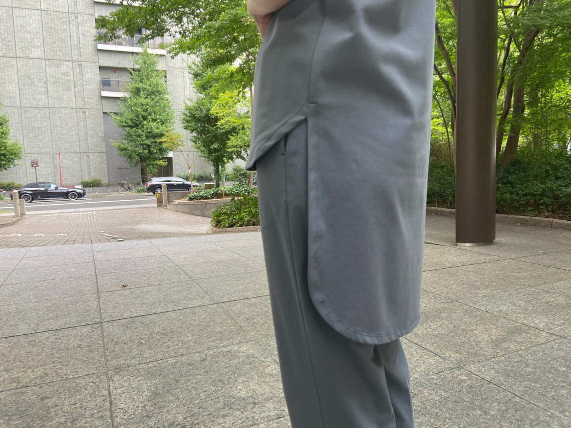 スリットを入れて後ろを長めに。着るだけでバランスよく見えるシルエットに。