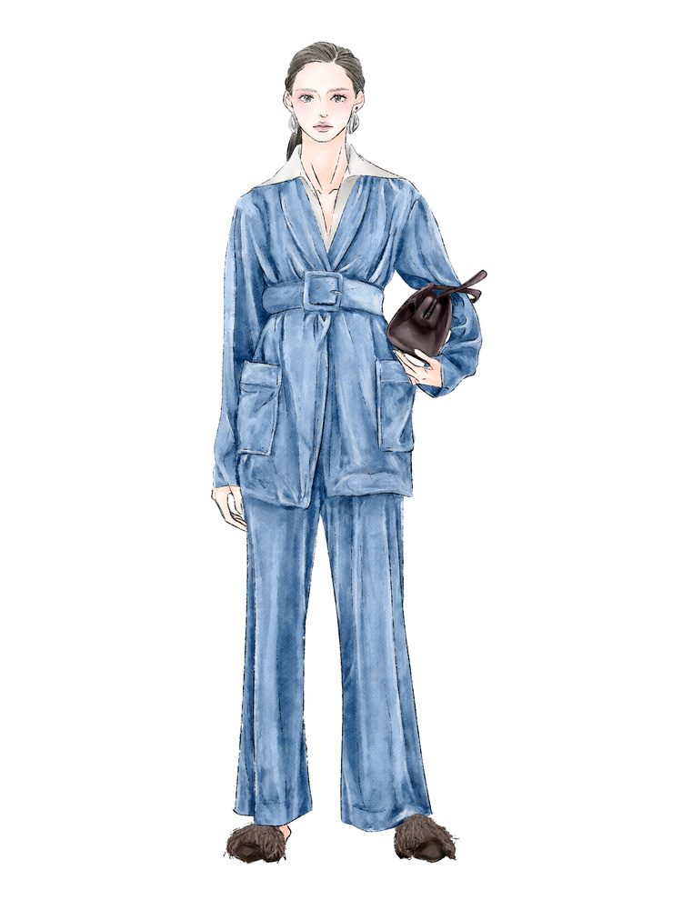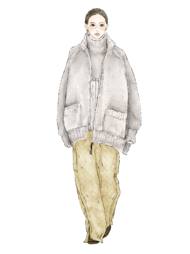 家着っぽくなってしまうパイルやリブの素材も、洗練された落ち感や光沢を付与して一気にドラマティックな印象に。たっぷりドレープを出すためのボリューム感やタックやギャザーにも対応できる肉感に注目。