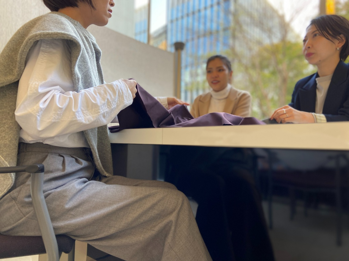 千花:そうですね、とにかくこの素材はとっても作るのに時間がかかるんです。早くて3ヶ月、半年以上かかることも。だから、私たちはお客様が欲しい!と思う半年以上前からそれを予測し、何度も何度も工場に足を運んで、メーカーさんと打ち合わせを重ねてきました。多くのご注文をいただいても、追加生産ができないため、心苦しくもお断りしてしまうシーズンも。そうなると、お客様をがっかりさせてしまったり、社内でもケンカになることも。。。