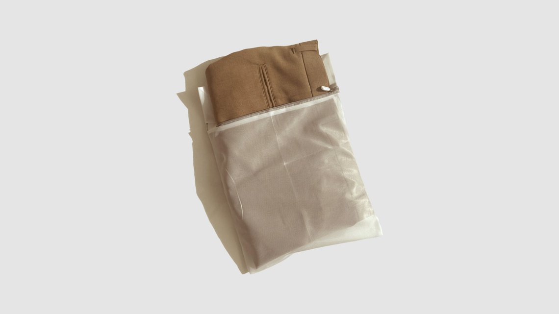 洗濯機を使用する場合は必ず、デリケートコースで。まずはキレイに折りたたんで洗濯ネットへ入れる。