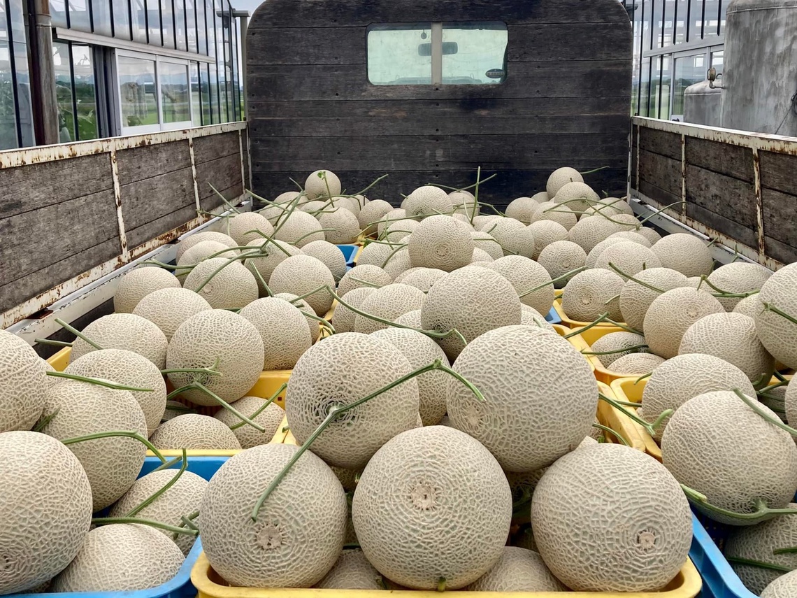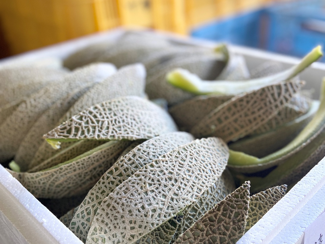 【PARTNERS】愛知県豊明市 横山農園 メロン _ 収穫時期 2月に植えた苗が成長し、実がなり収穫できるのは6月中~8月中頃の約2か月間。 直営レストランでデザートとして提供 農園の直営レストラン、オステリアカンパーロ(愛知県長久手市)ではシーズン中自社農園で育ったメロンを使用したデザートを提供。 染料になる部分:果皮 1シーズン分レストランで提供されたメロンの皮をすべて使用し、染料を抽出します。