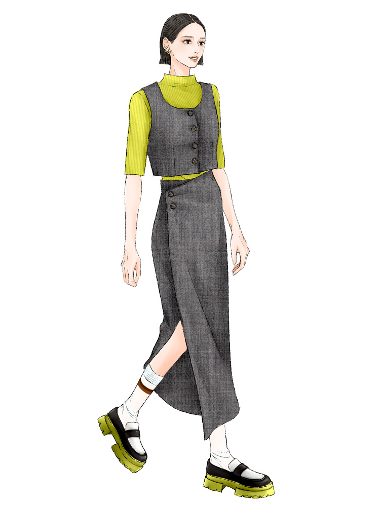 通常のTRでは難しいモードな直線シルエットも可能に。