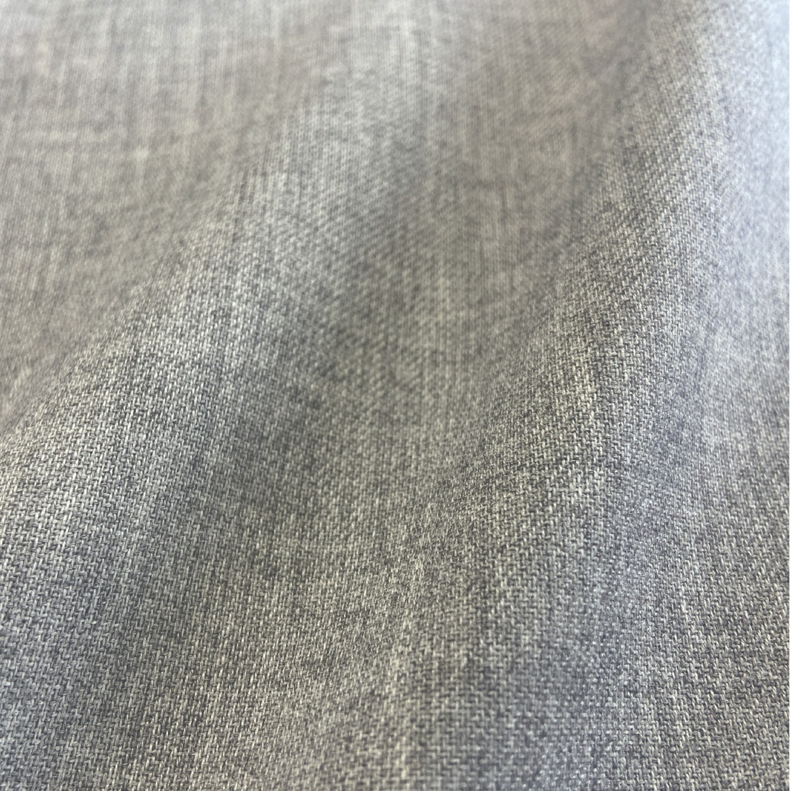 きちんと感を保ちながらも堅苦しさを取り除いた、ややカジュアル見えする新しい梳毛調素材。ポリエステルとレーヨンのワタをブレンドする際に、その配合と紡績を特殊な方法で行うことによって粗びきなメランジ感に。なるべく毛羽を残さないドライなタッチ。