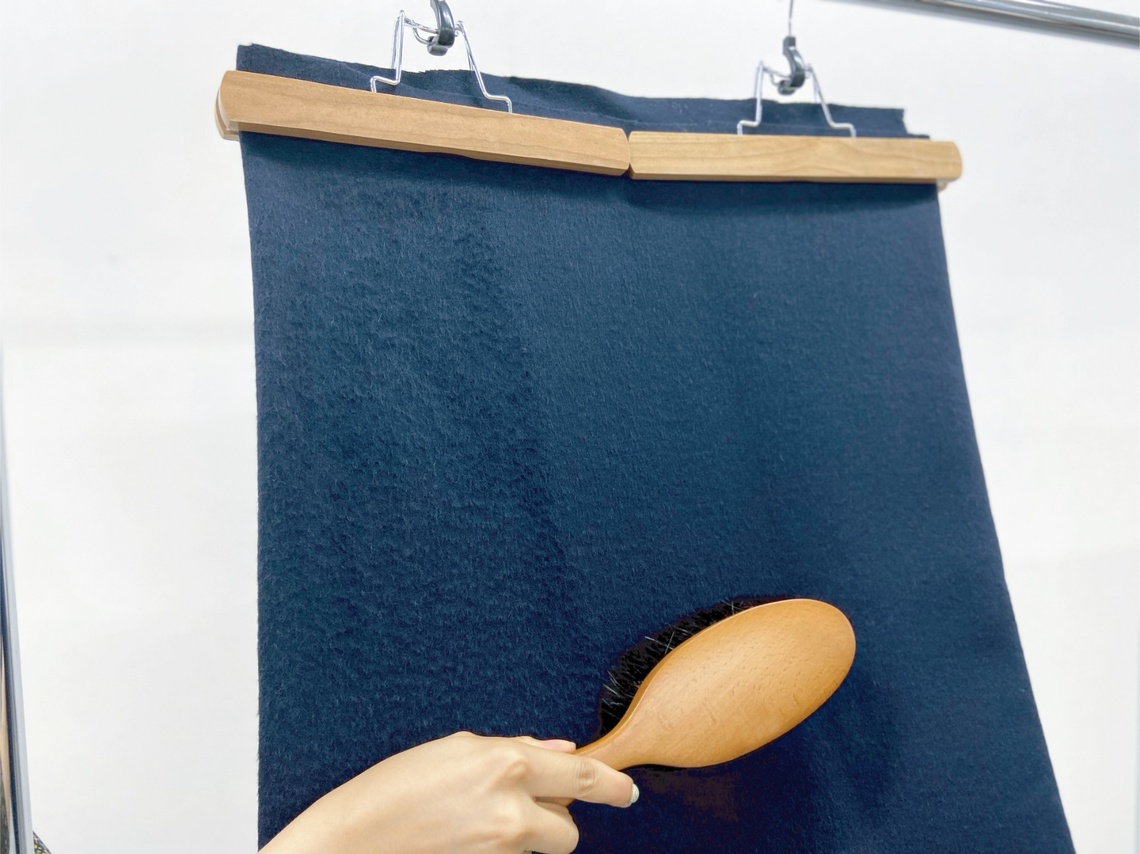 基本のブラシのかけ方は、まず生地の毛並みに逆らう方向でホコリを浮かせてから、そのあと毛並みにそわせて掛けます。日々、お手入れすることで、お気に入りのお洋服が長持ちします。