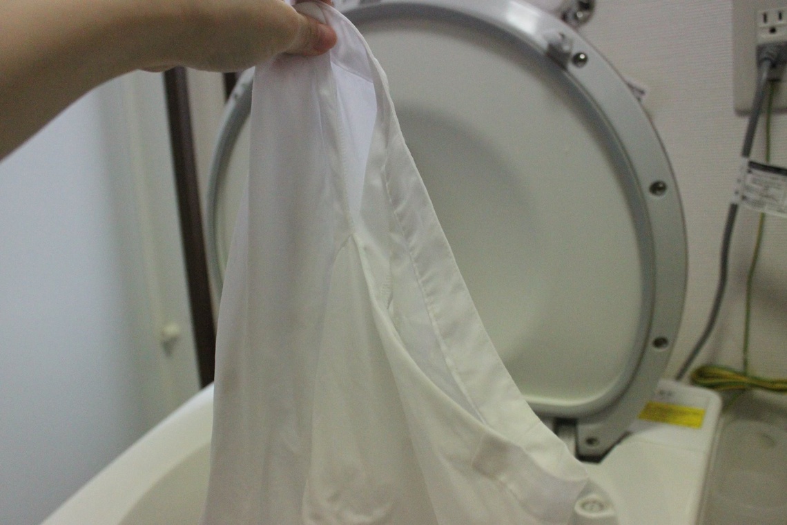繊維を膨らませることで弾力性が増し、干しておくだけで自然としわが伸びます。