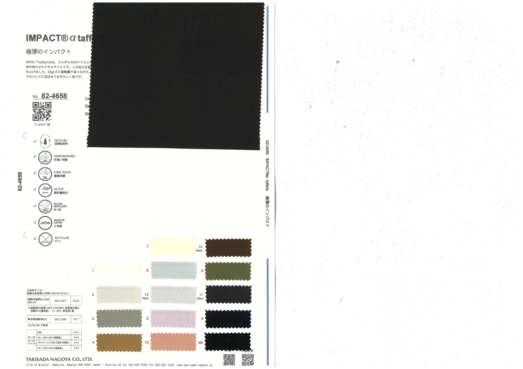 インパクトアルファはフルダルの66ナイロンを仮撚することにより、マットな質感とストレッチ性を併せ持たせたテキスタイルです。53g/㎡と超軽量でありながら、C0撥水加工により、急な悪天候にも対応可能で、いつでもバックに忍ばせておきたい一枚です。