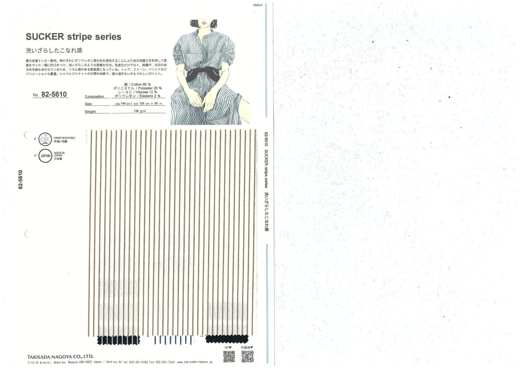 夏の定番サッカー素材。柄のきわにポリウレタン混の糸を使用することにより糸の収縮さを利用して表面をサッカー調に凹凸をつけ、洗いざらしのような表情を付与。色変化だけでなく、組織や、光沢のある糸を組み合わせているため、リズム感のある表面感になっている。トップ、2トーン、ソリッドなどバリエーションも豊富。シャツとジャケットの中間の肉感で、透け過ぎないのもうれしいポイント。