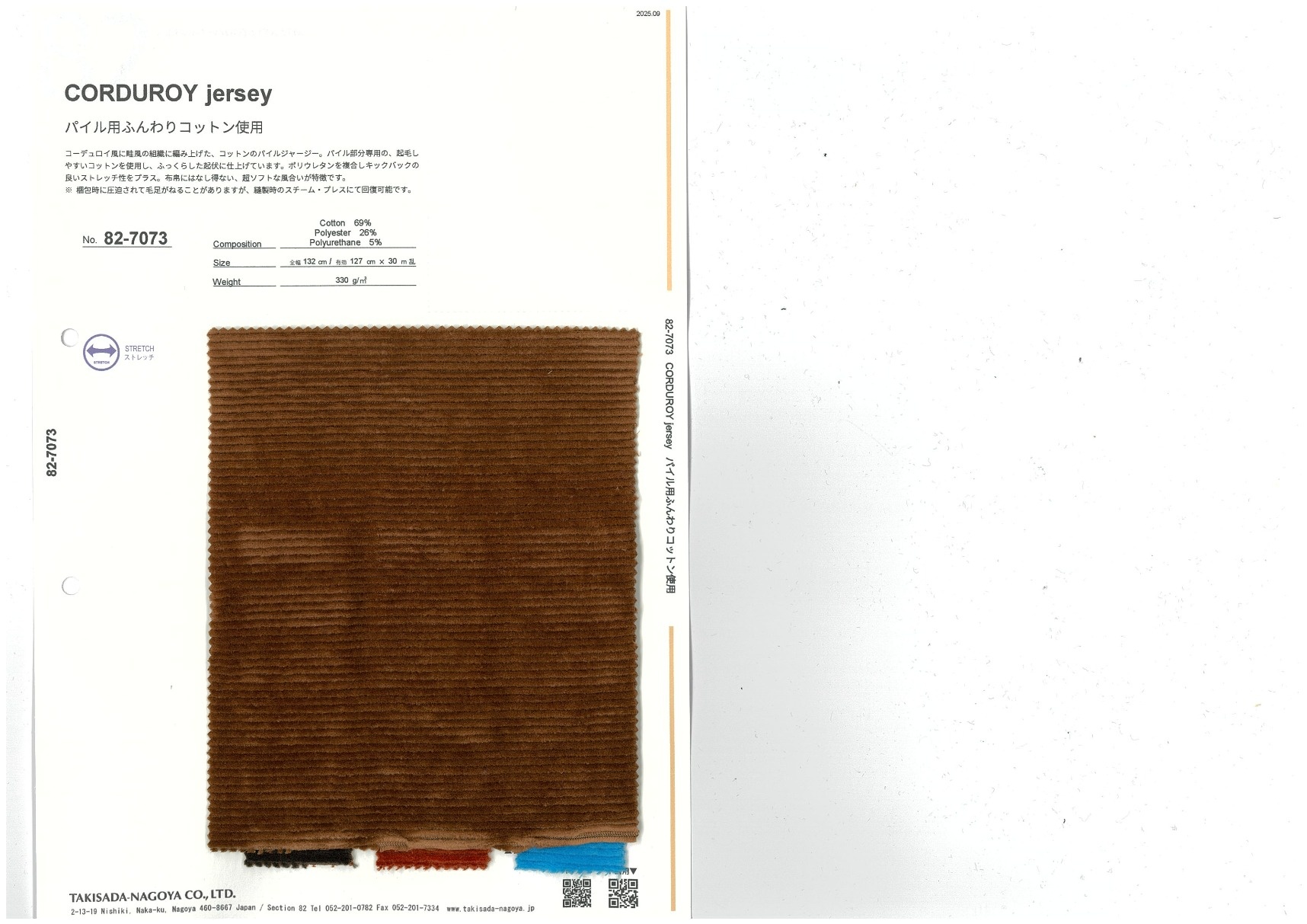 コーデュロイ風に畦風の組織に編み上げた、コットンのパイルジャージー。パイル部分専用の、起毛しやすいコットンを使用し、ふっくらした起状に仕上げています。ポリウレタンを複合しキックバックの良いストレッチ性をプラス。布帛にはなし得ない、超ソフトな風合いが特徴です。