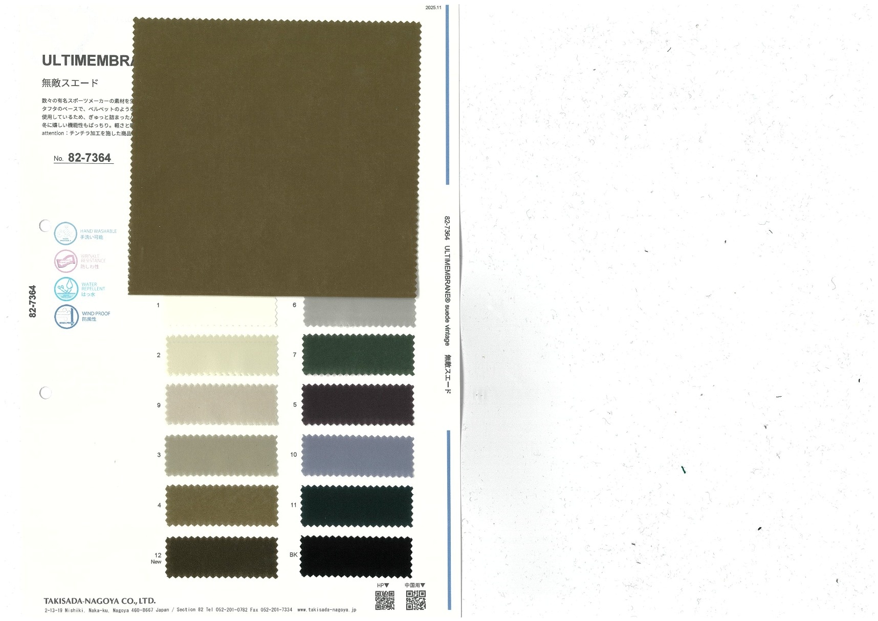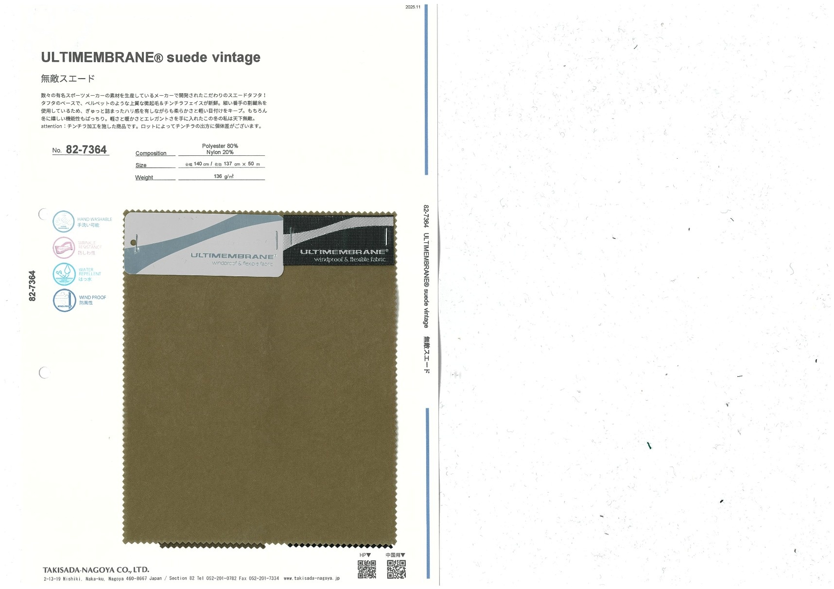 数々の有名スポーツメーカーの素材を生産しているメーカーで開発されたこだわりのスエードタフタ!タフタのベースで、ベルベットのような上質な微起毛&チンチラフェイスが新鮮。細い番手の割繊糸を使用しているため、ぎゅっと詰まったハリ感を有しながらも柔らかさと軽い目付けをキープ。もちろん冬に嬉しい機能性もばっちり。軽さと暖かさとエレガントさを手に入れたこの冬の私は天下無敵。