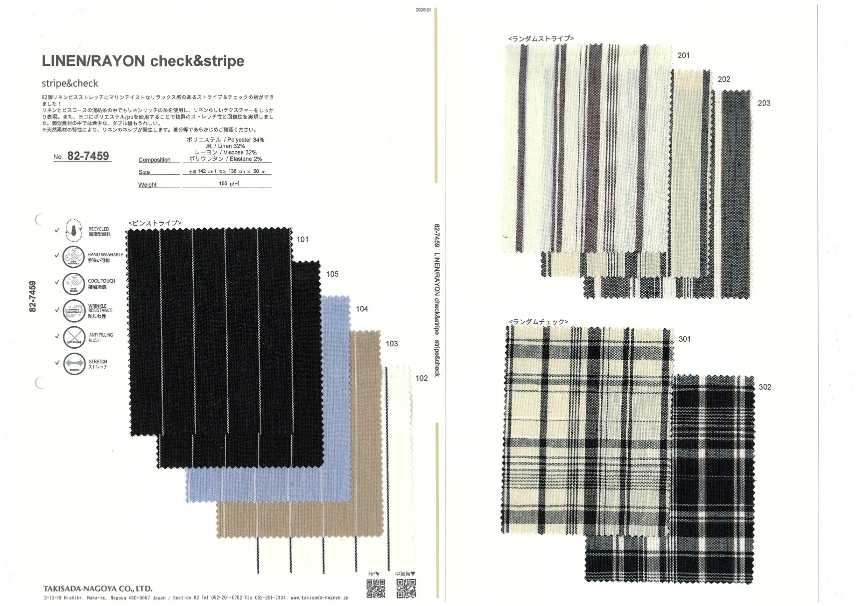 82課リネンビスストレッチにマリンテイストなリラックス感のあるストライプ&チェックの柄ができました!