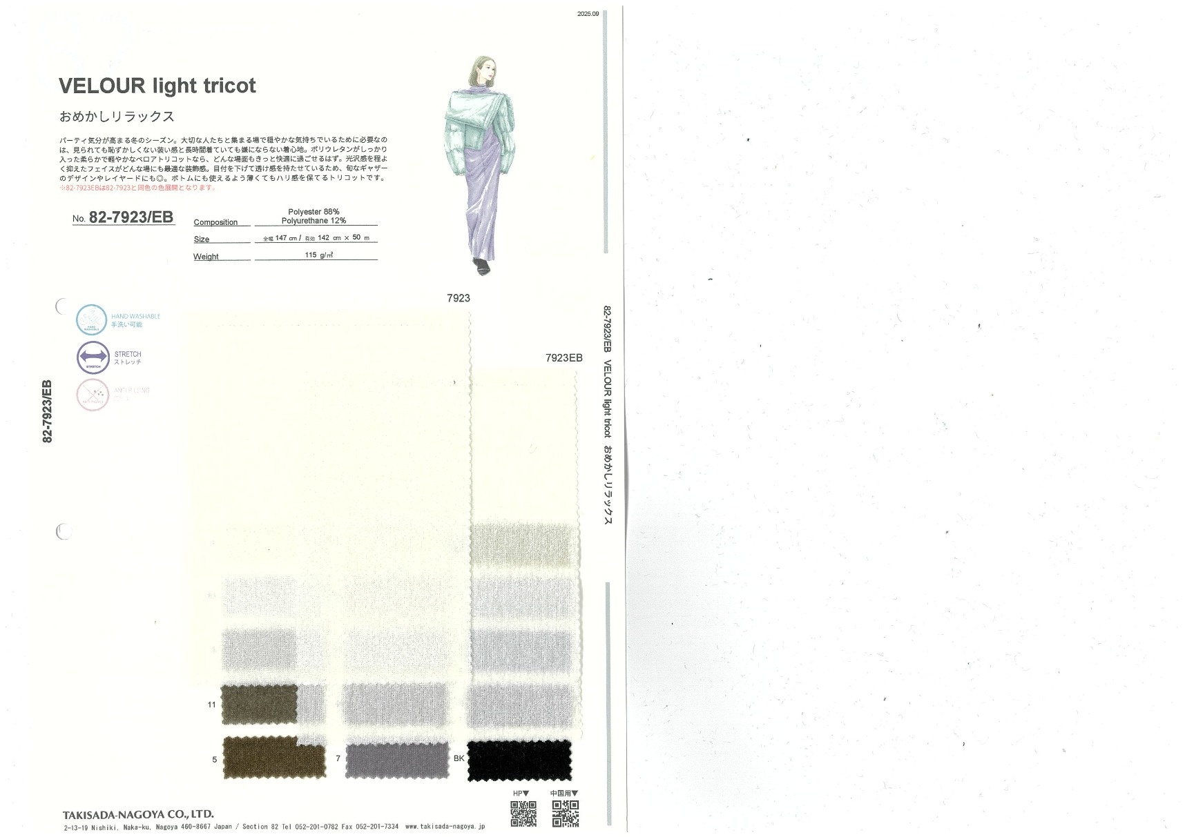 パーティ気分が高まる冬のシーズン。大切な人たちと集まる場で穏やかな気持ちでいるために必要なのは、見られても恥ずかしくない装い感と長時間着ていても嫌にならない着心地。ポリウレタンがしっかり入った柔らかで軽やかなベロアトリコットなら、どんな場面もきっと快適に過ごせるはず。光沢感を程よく抑えたフェイスがどんな場にも最適な装飾感。目付を下げて透け感を持たせているため、旬なギャザーのデザインやレイヤードにも◎。ボトムにも使えるよう薄くてもハリ感を保てるトリコットです。
