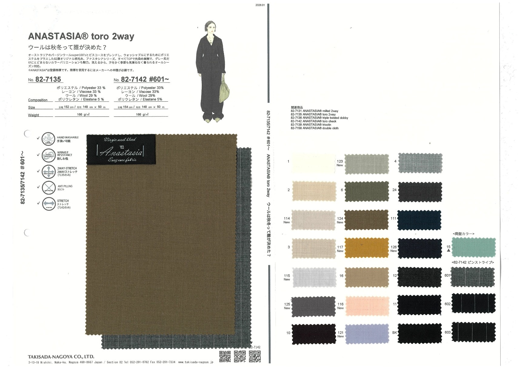 オーストラリアのバージンウールsuper100'sとビスコースをブレンドし、ウォッシャブルにするためにポリエステルをプラスした82課オリジナル梳毛糸、アナスタシアシリーズ。すべてTOPで先染め展開で、グレー系だけにとどまらないカラーバリエーションも魅力。洗えるから、汗をかく季節も気兼ねなく着られるオールシーズン対応。※ANASTASIA®は登録商標です。商標を使用するにはメーカーへの申請が必要です。