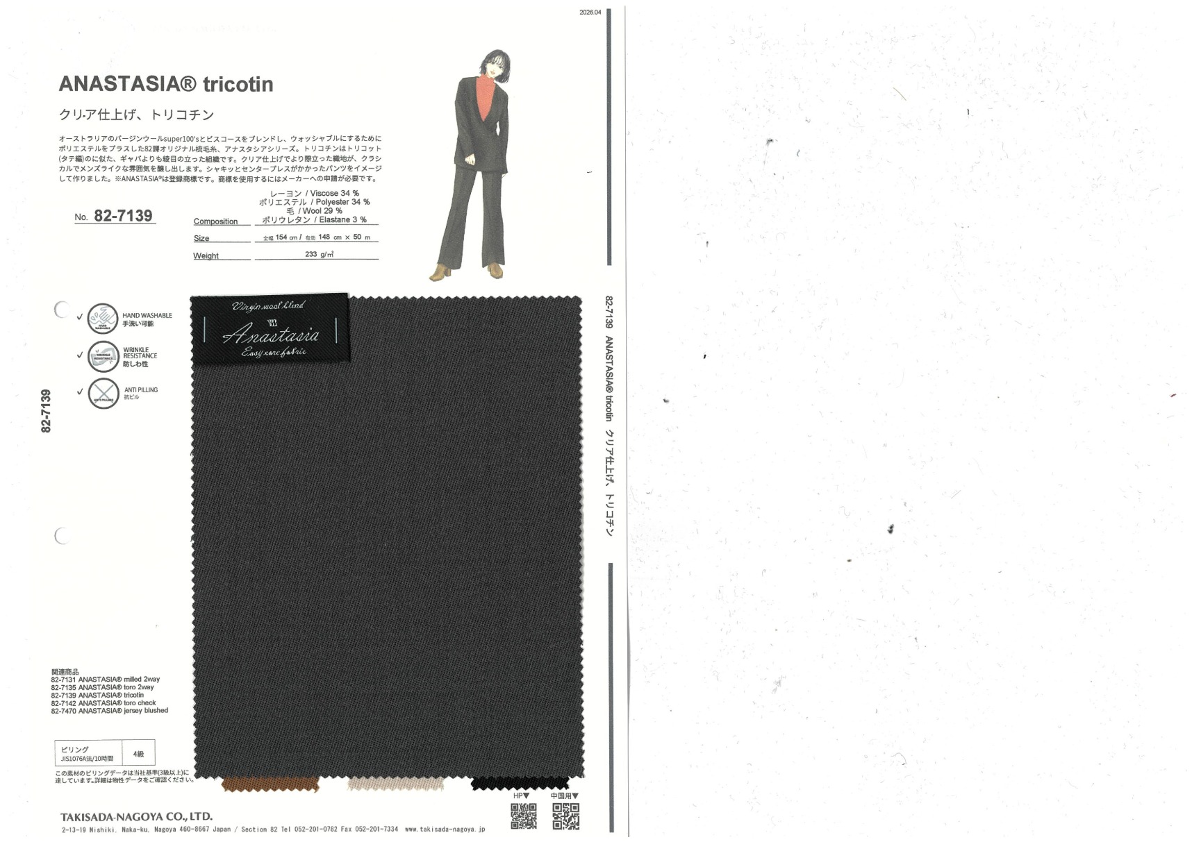 オーストラリアのバージンウールとビスコースをブレンドし、ウォッシャブルにするためにポリエステルをプラスしました。トリコチンはトリコット(タテ編)のに似た、ギャバよりも綾目の立った組織です。クリア仕上げでより際立った織地が、クラシカルでメンズライクな雰囲気を醸し出します。シャキッとセンタープレスがかかったパンツをイメージして作りました。